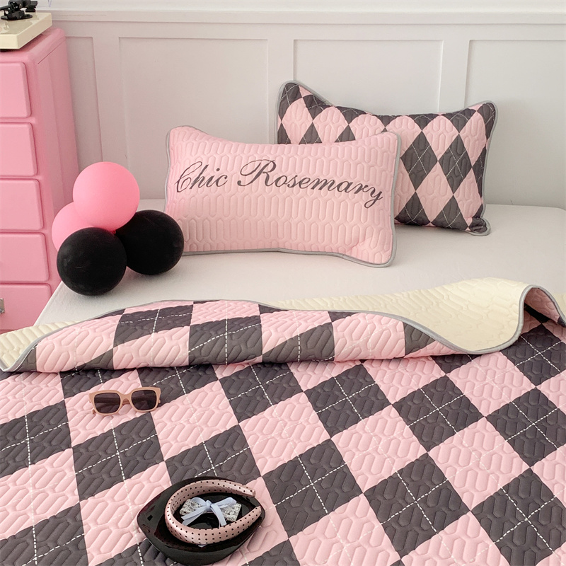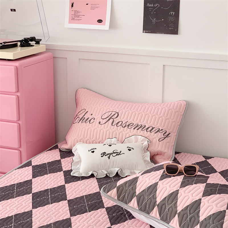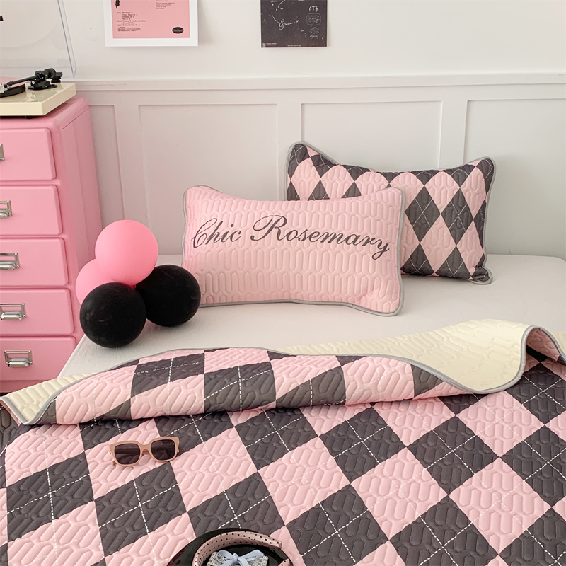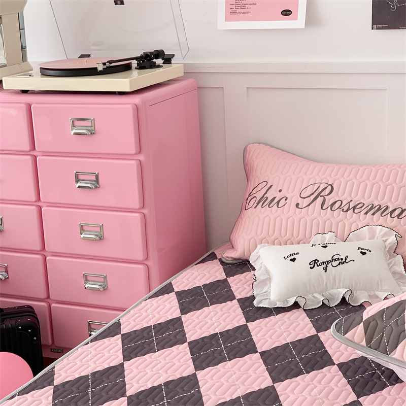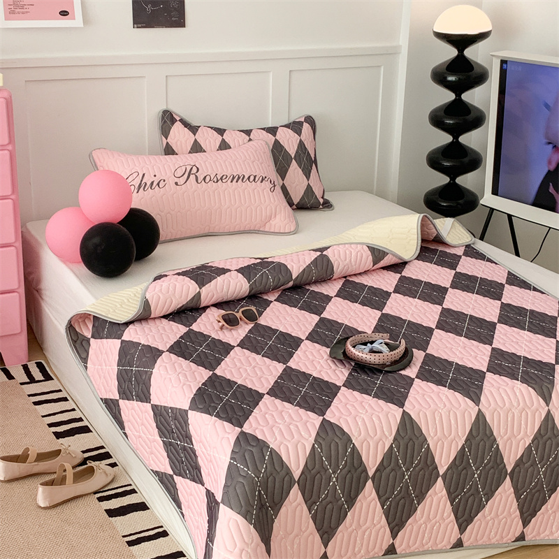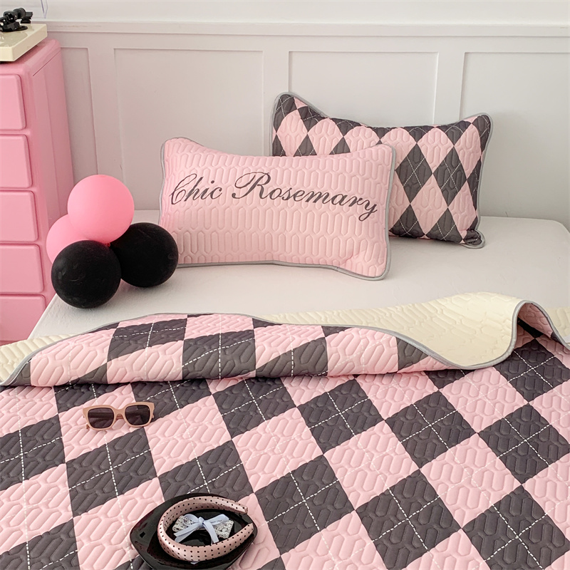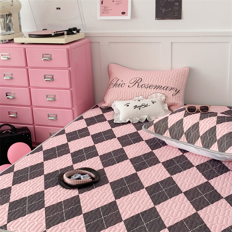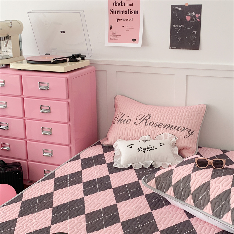 昔可家纺 2023新款甜酷黑粉系列乳胶凉席 学院菱格黑粉色