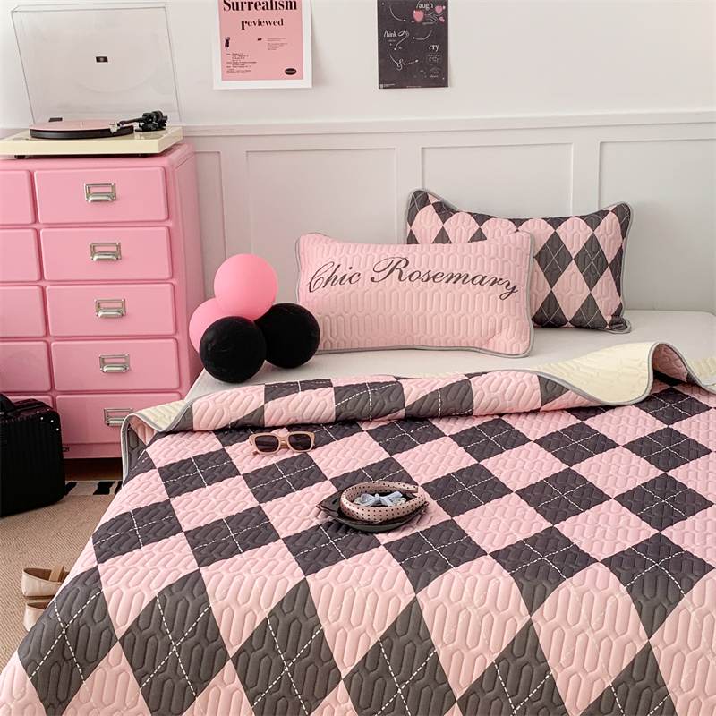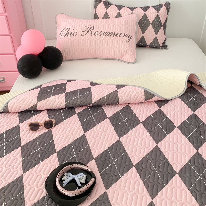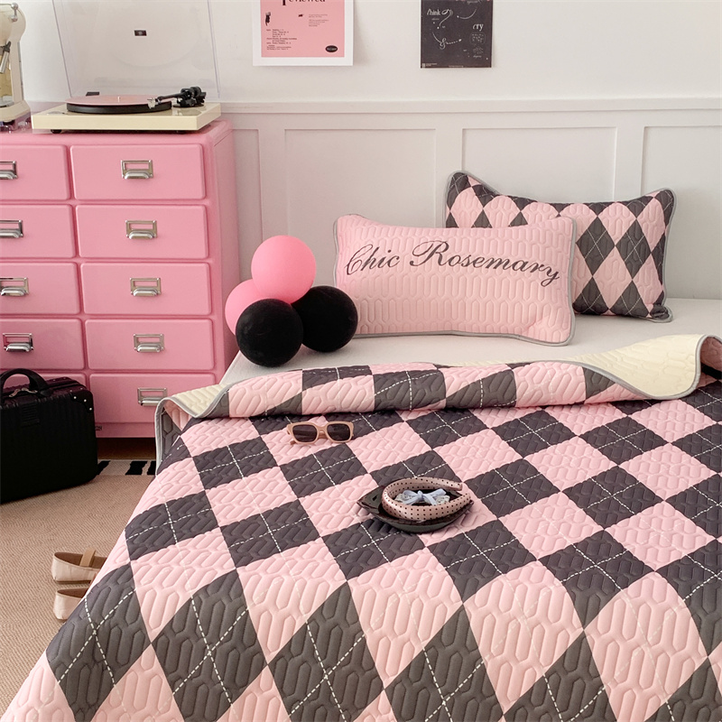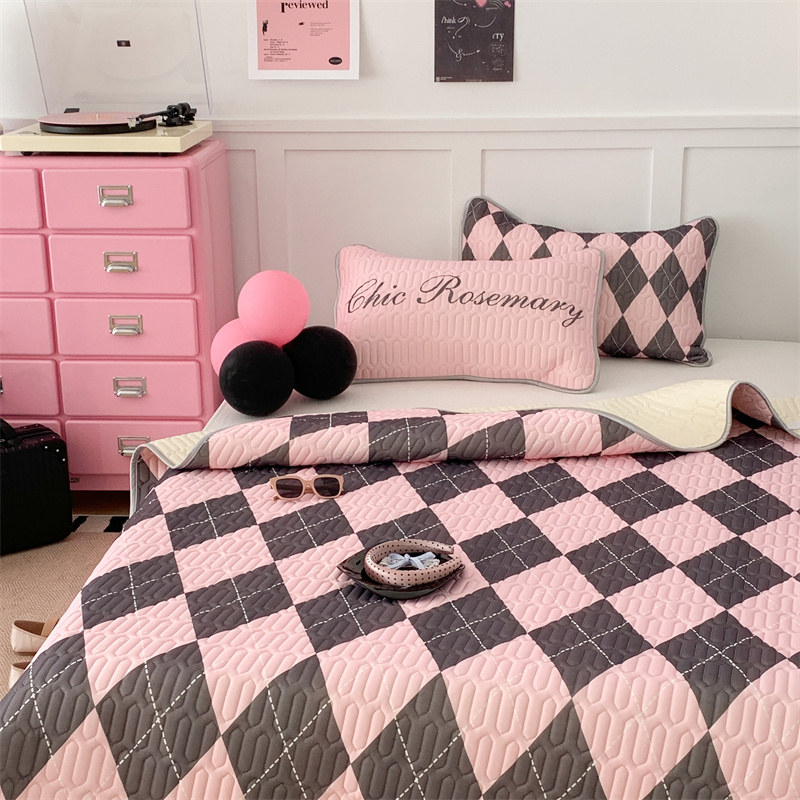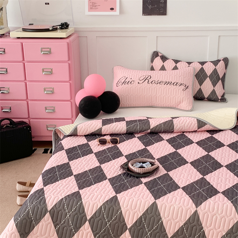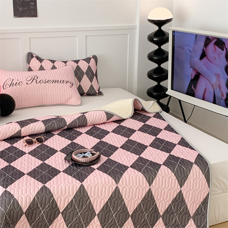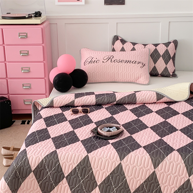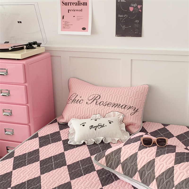 昔可家纺 2023新款甜酷黑粉系列乳胶凉席 学院菱格黑粉色