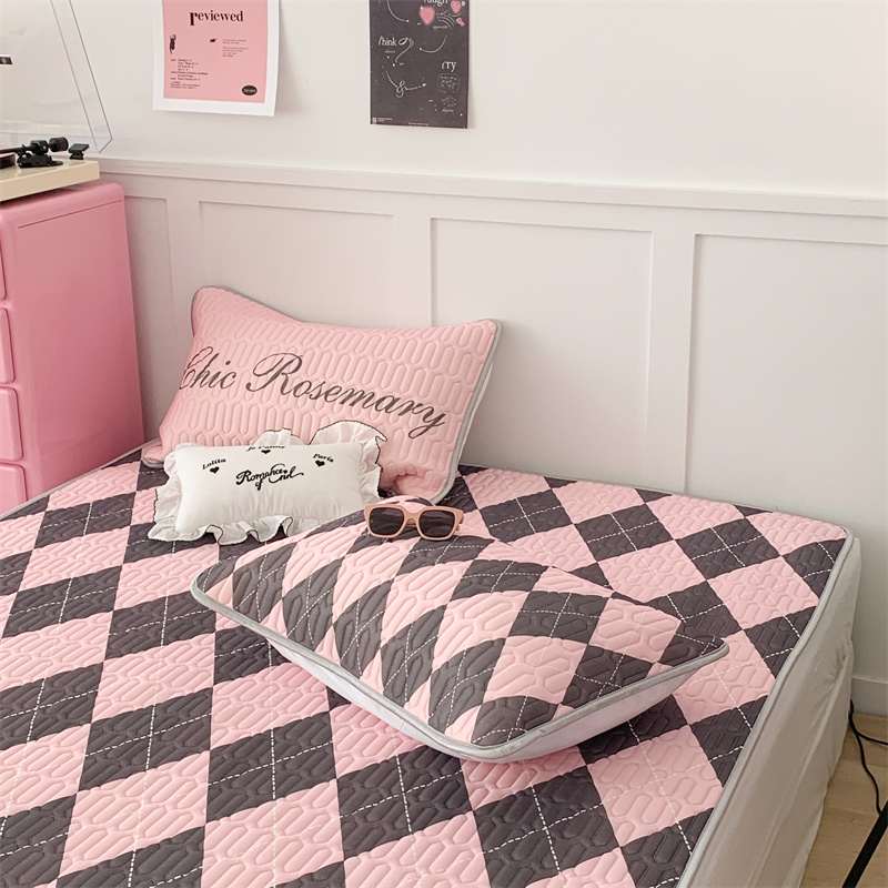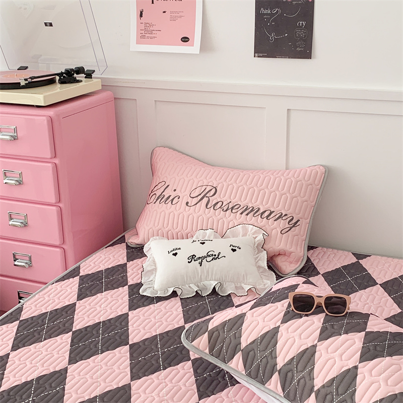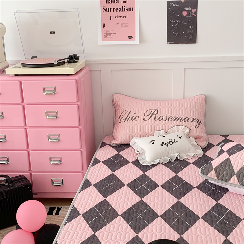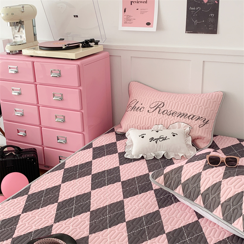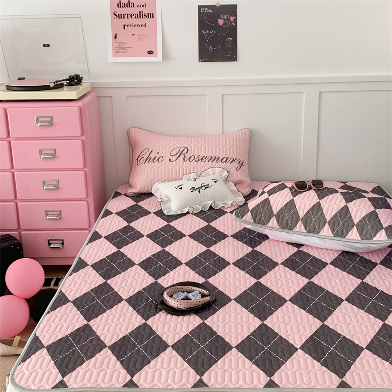 商品名称:昔可家纺 2023新款甜酷黑粉系列乳胶凉席 学院菱格黑粉色