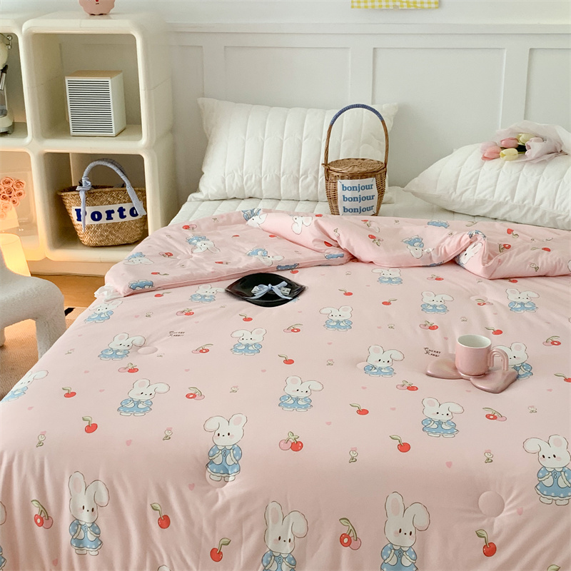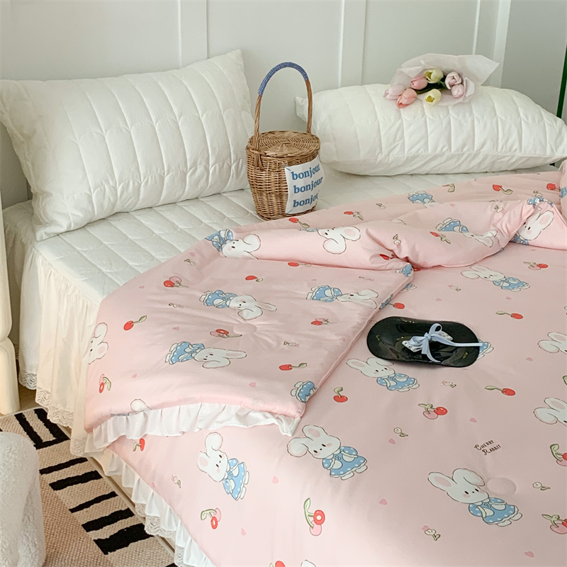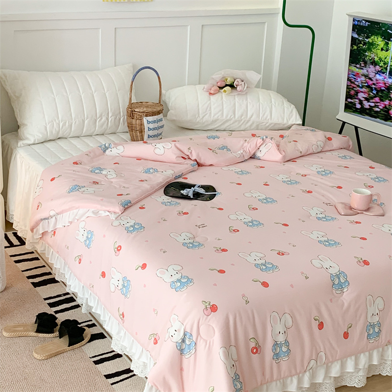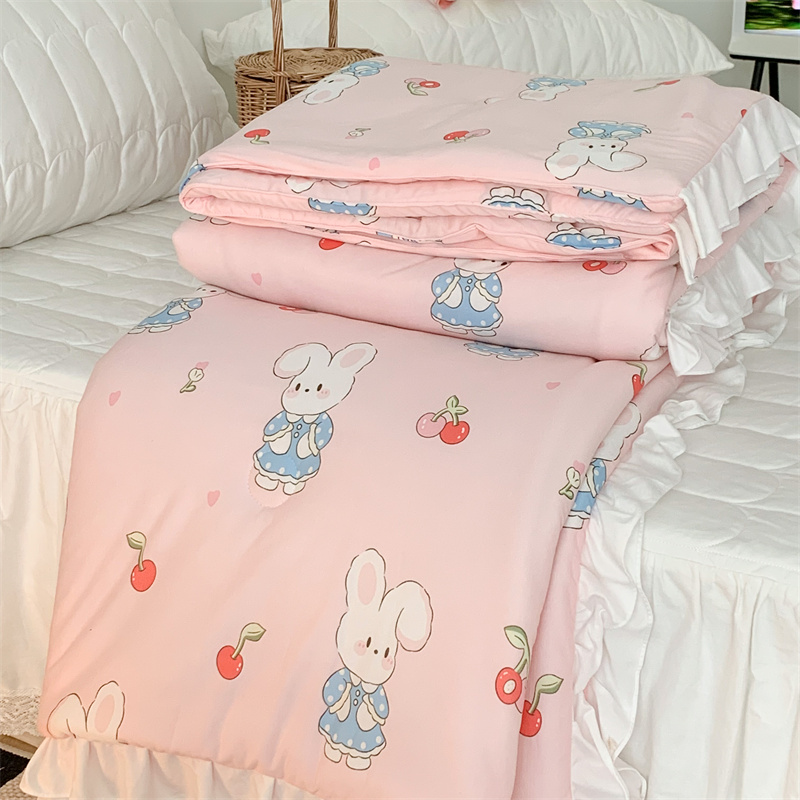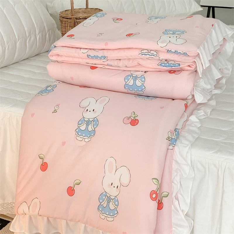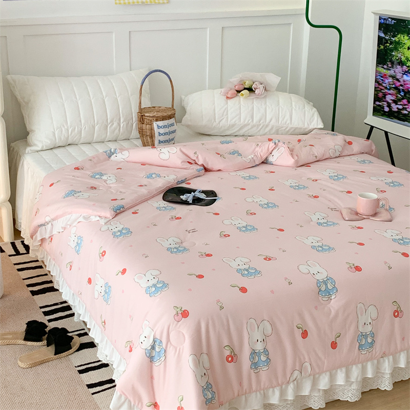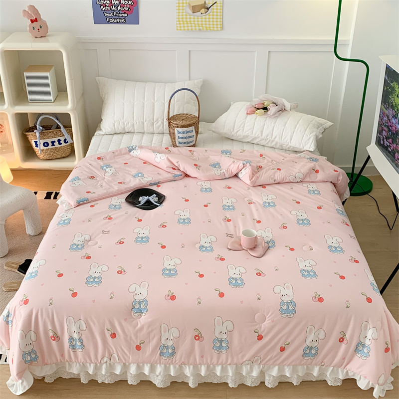 商品名称:昔可家纺 2023新款花边款云柔针织大豆夏被 樱桃兔几