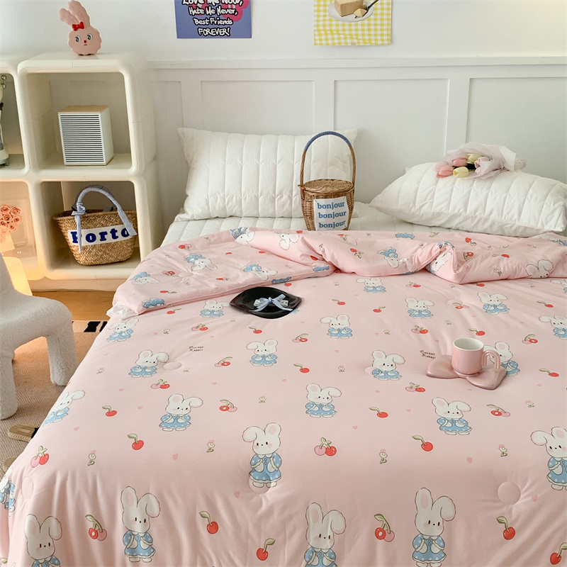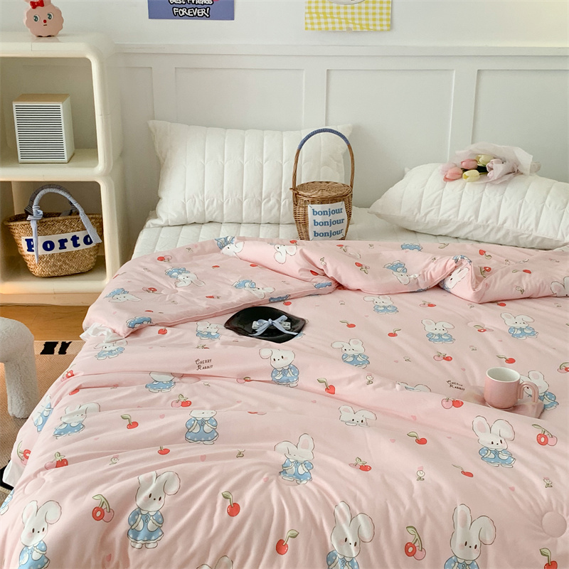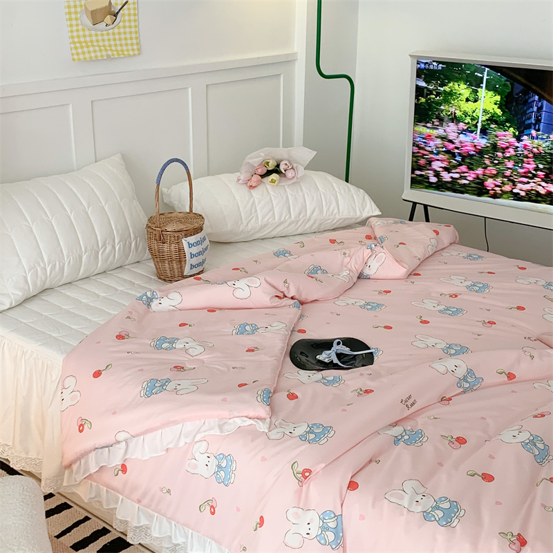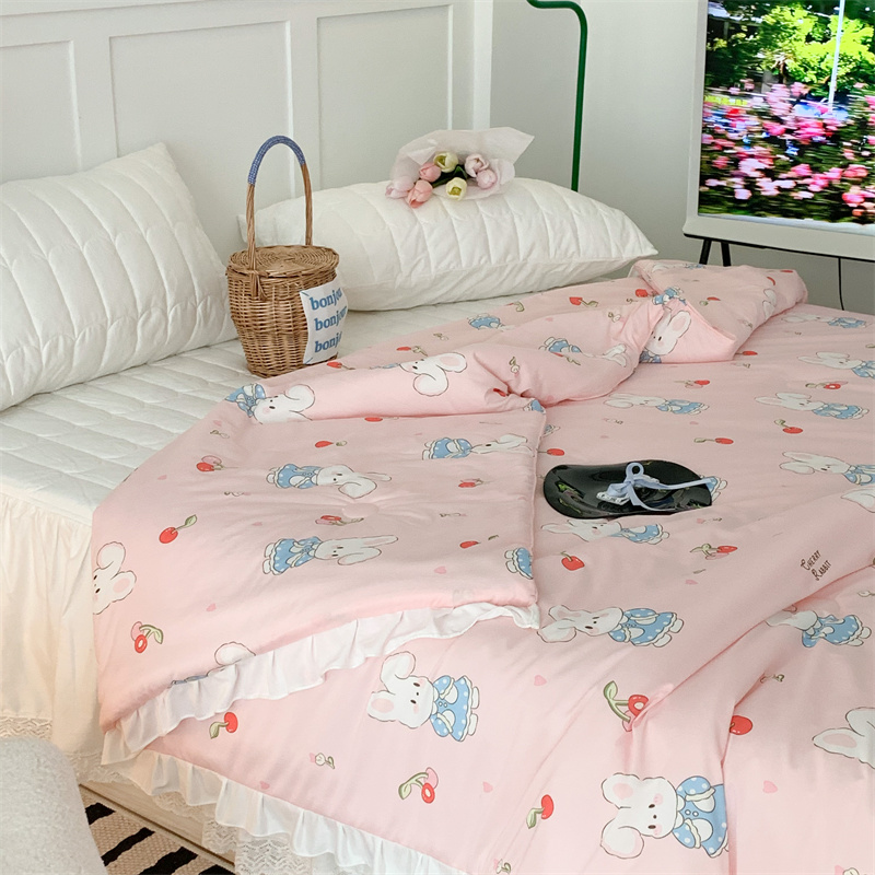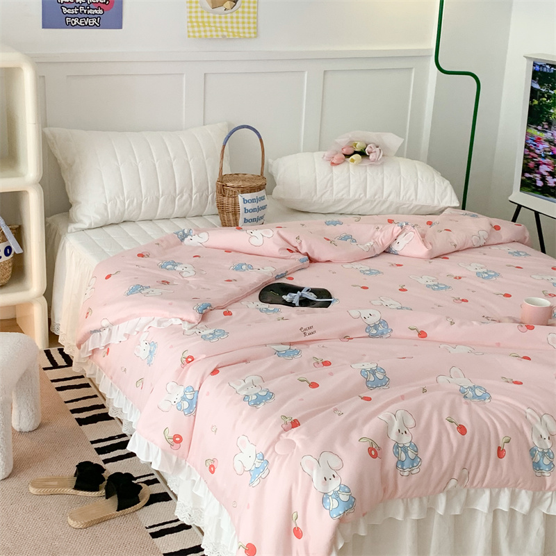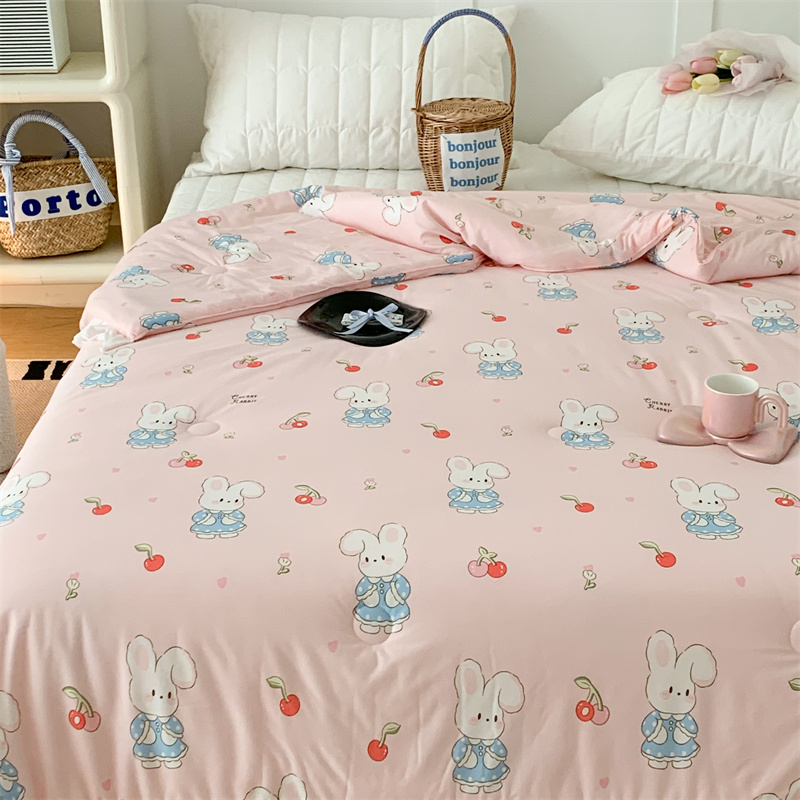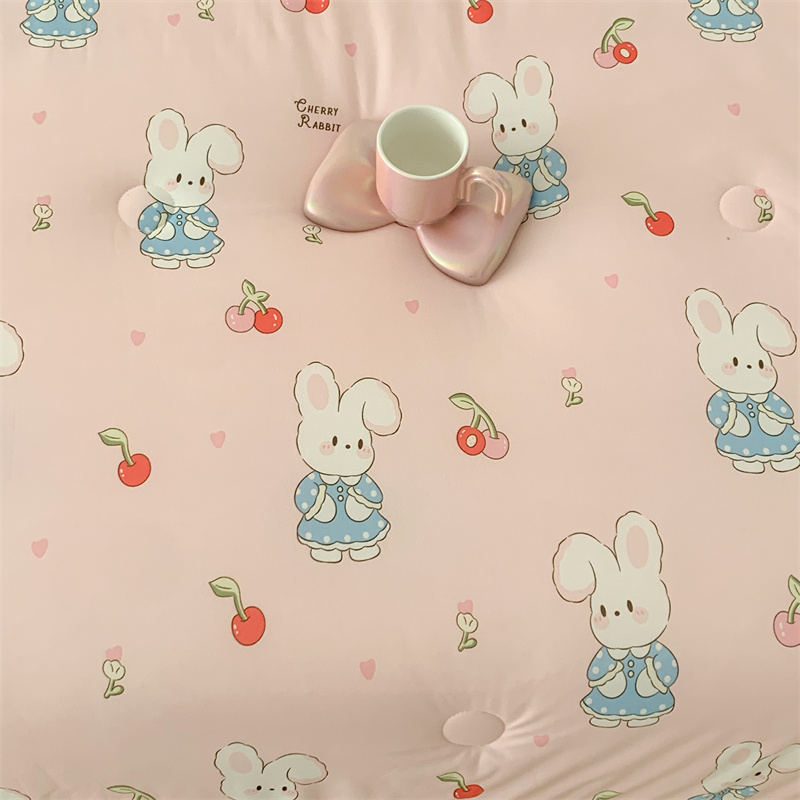 商品名称:昔可家纺 2023新款花边款云柔针织大豆夏被 樱桃兔几