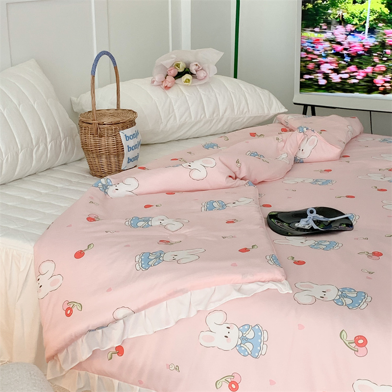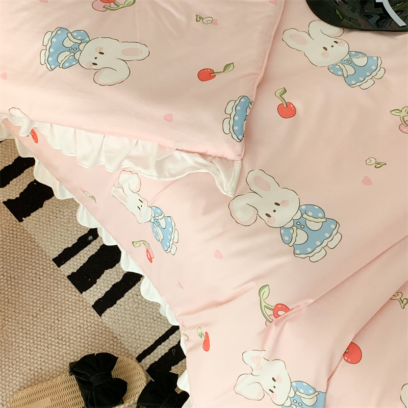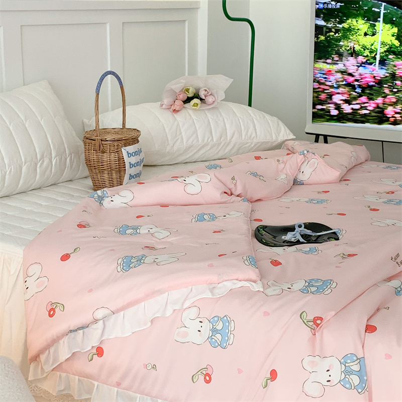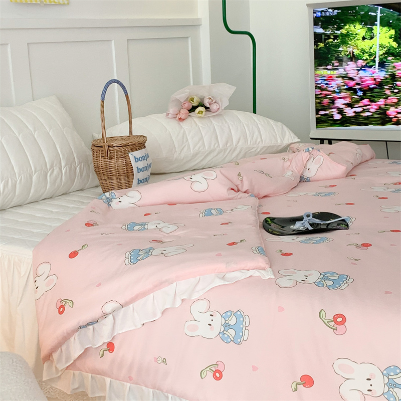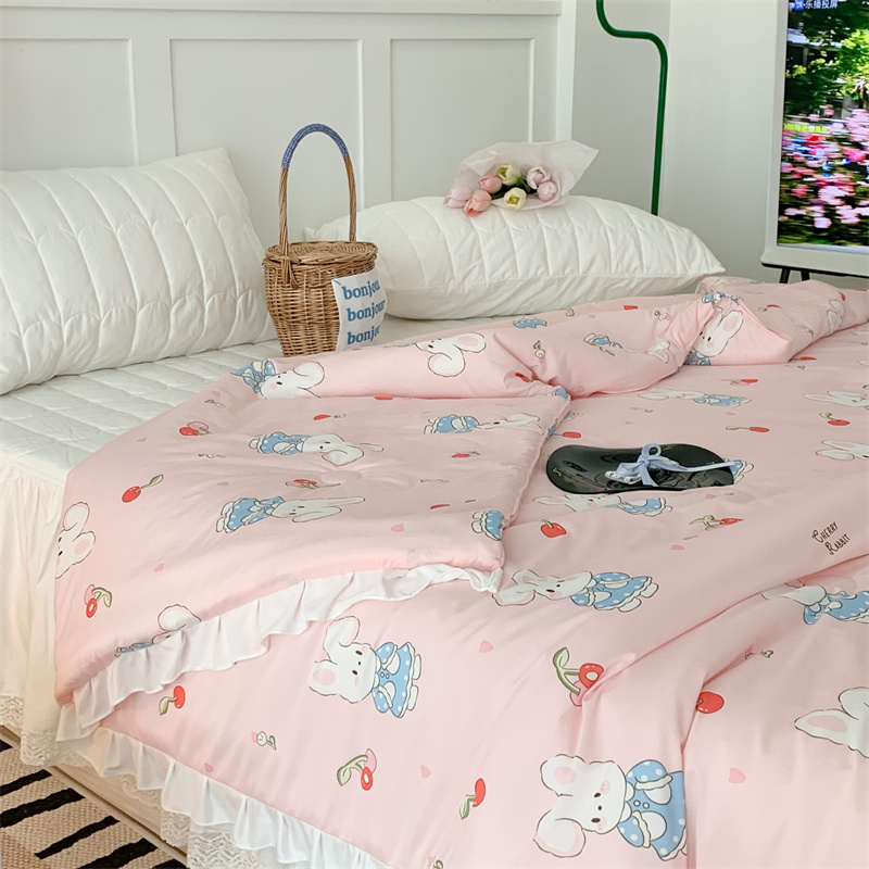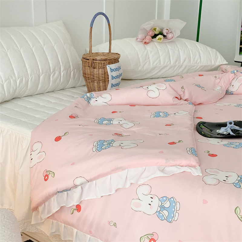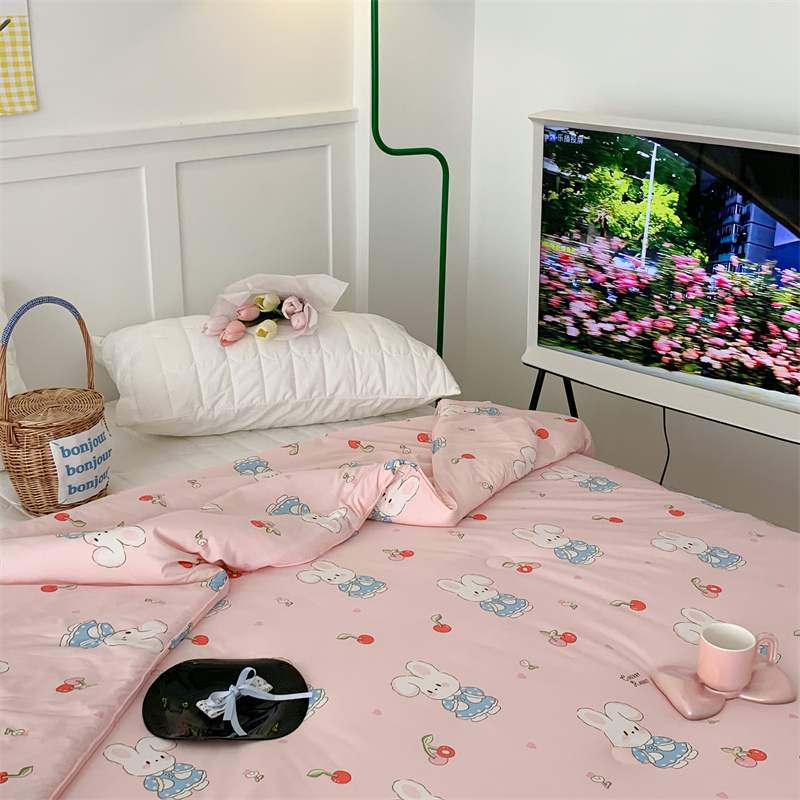 商品名称:昔可家纺 2023新款花边款云柔针织大豆夏被 樱桃兔几