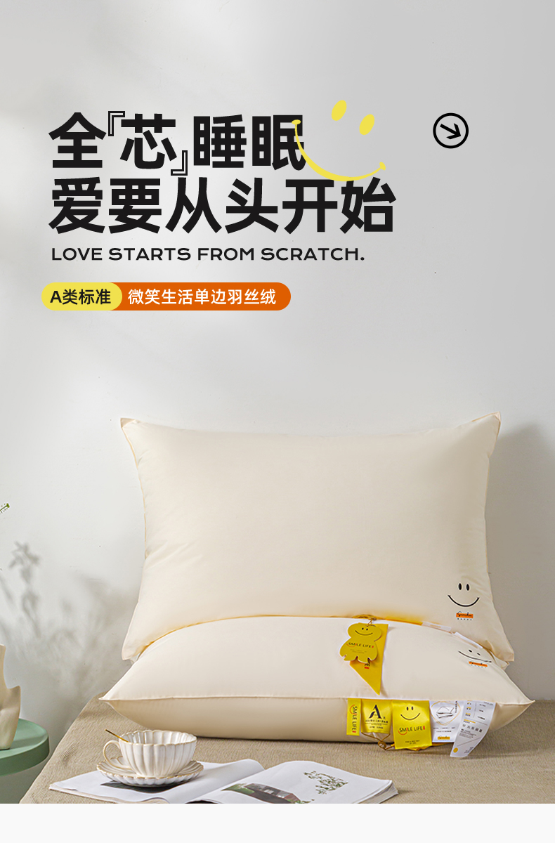 当前位置: 91家纺网 > 商品网购 > 枕头/枕芯/保健枕/颈椎枕 > 普通枕芯 > 麦肯锡 2023新款微笑生活羽丝绒枕 枕头枕芯48*74cm 风格一 微笑生活单边羽丝绒