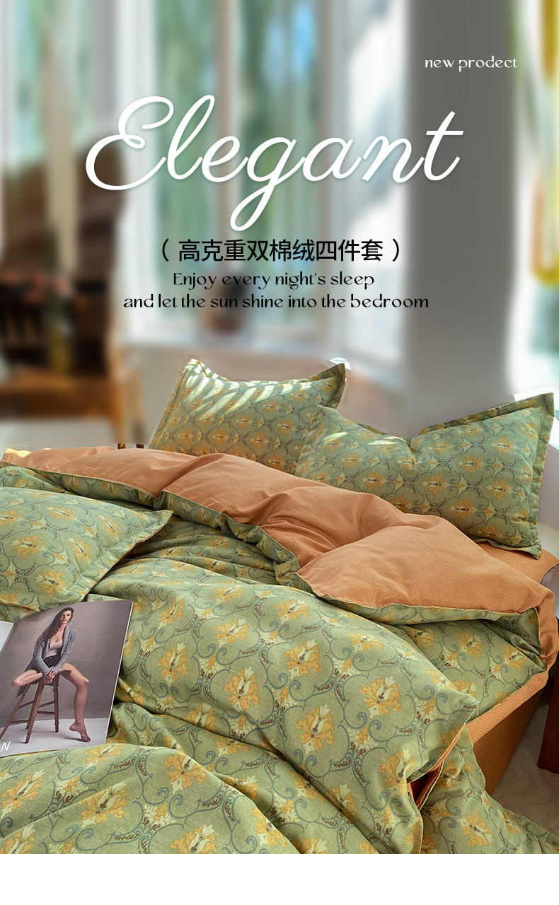 (总)妖妖家纺 2023铂金高克重植物羊绒130克双棉绒斜纹印花四件套