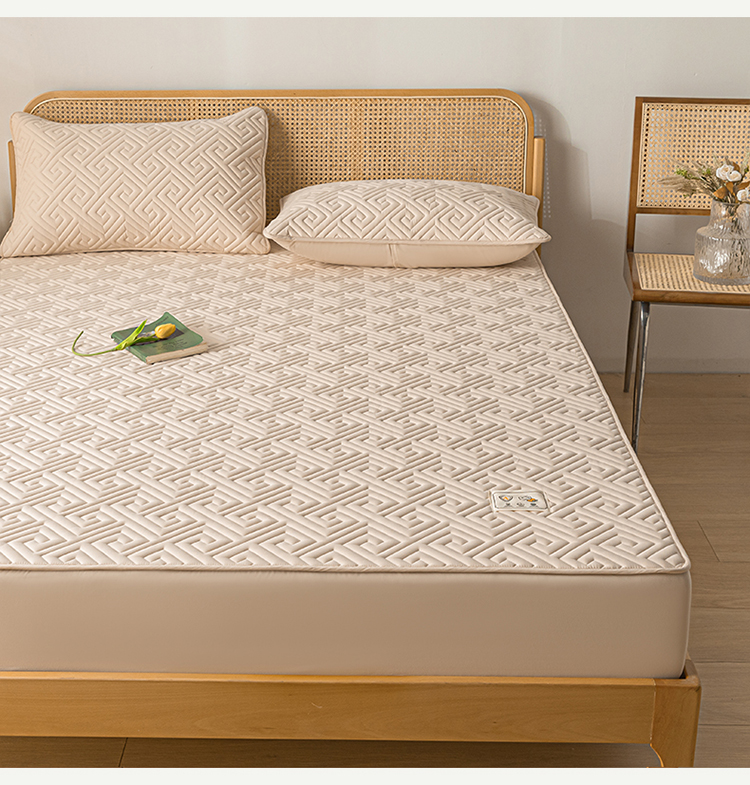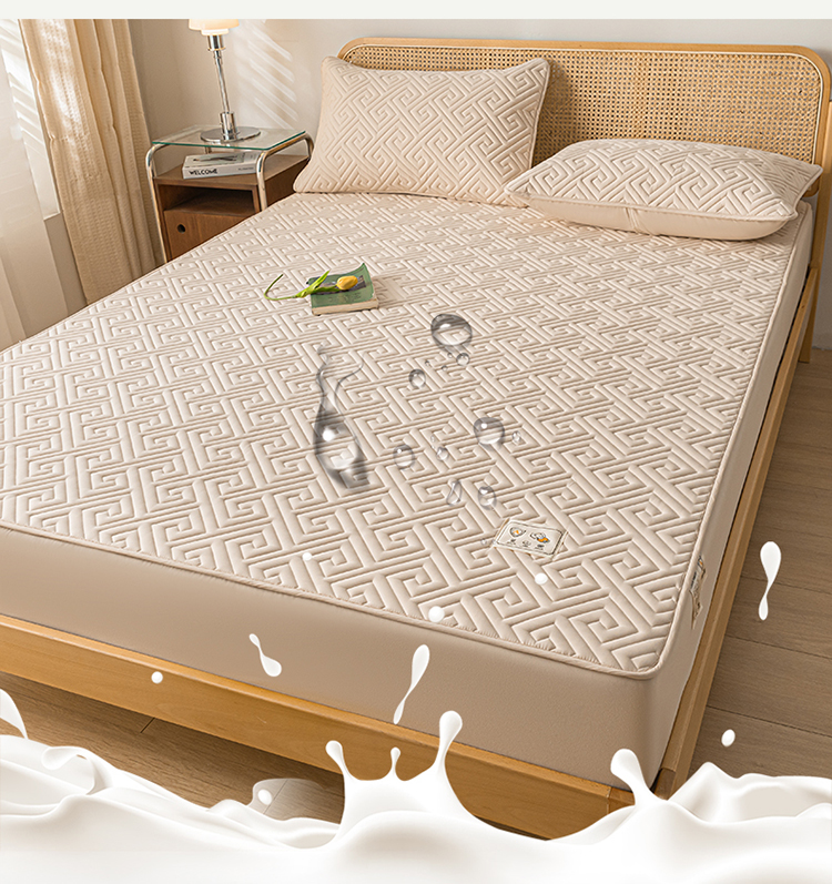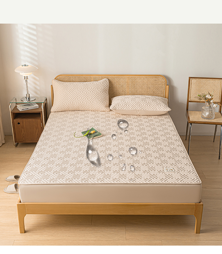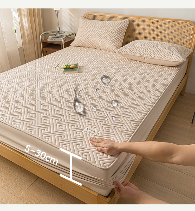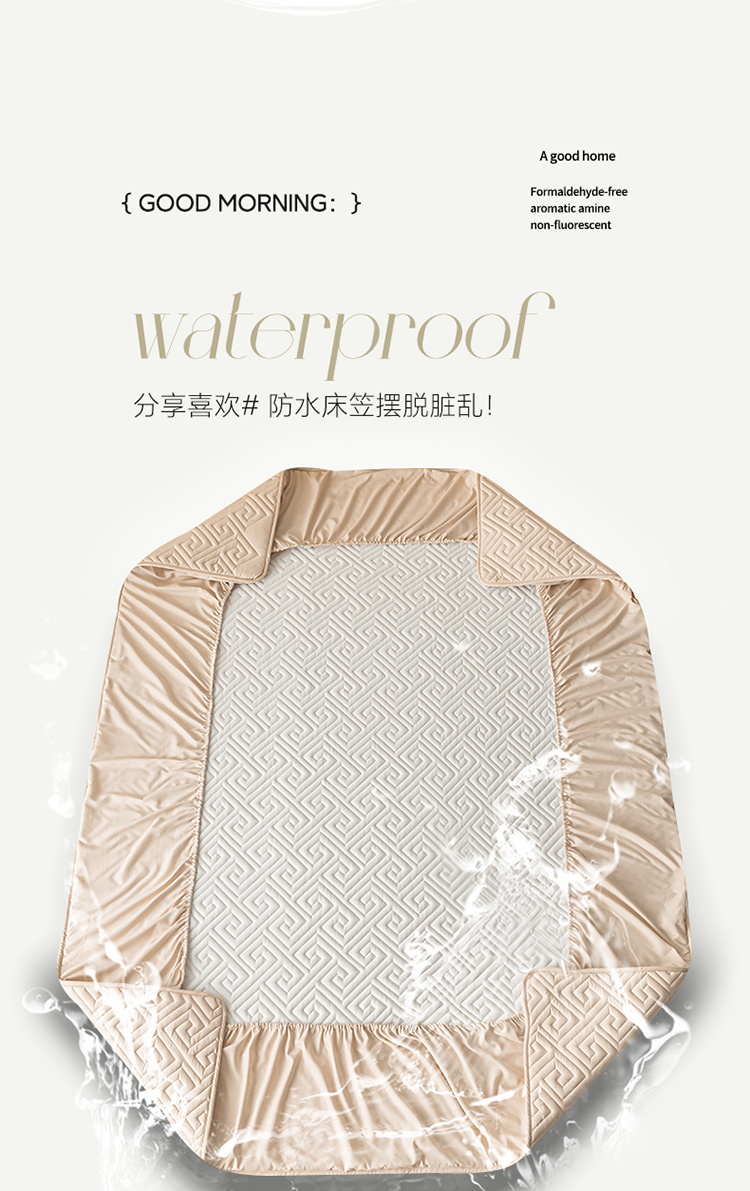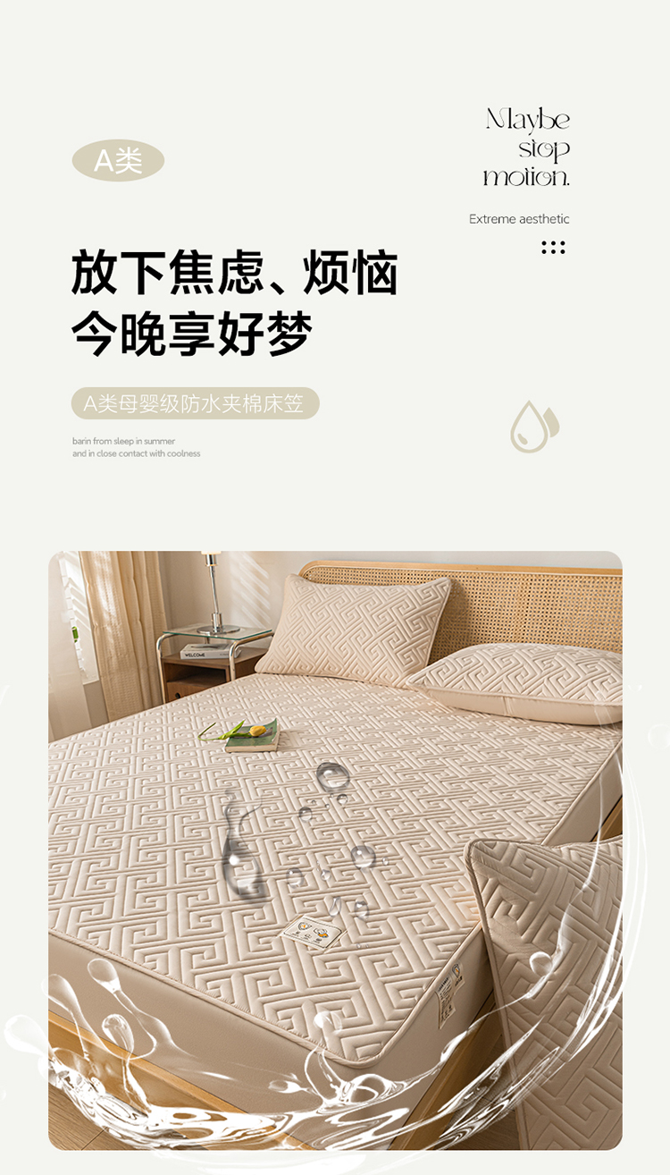 芬晴家纺 2023新款A类母婴级防水夹棉床笠 时光-卡其
