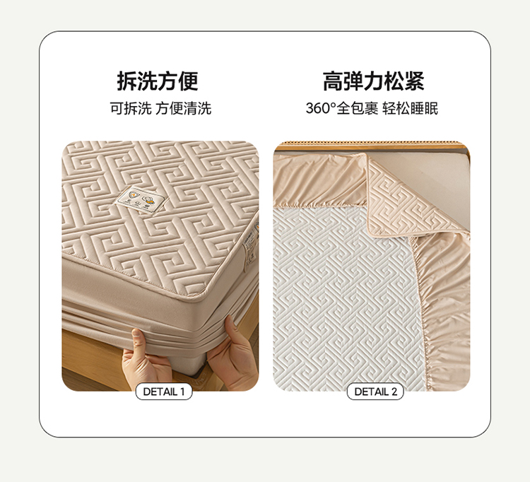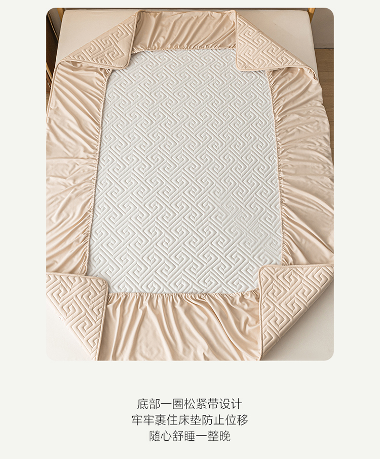 • 91家纺网 家纺一手货源 找家纺 芬晴家纺 2023新款A类母婴级防水夹棉床笠 时光-卡其