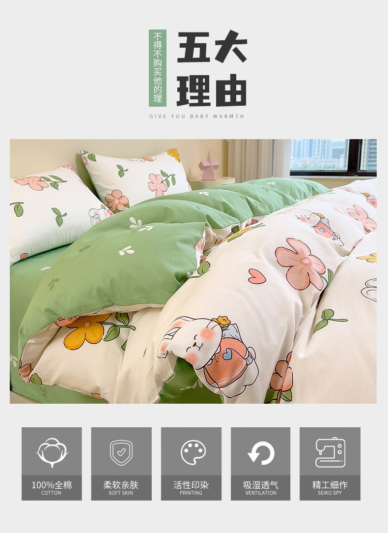 • 91家纺网 家纺一手货源 找家纺 芃成 2023新款全棉13070单被套 时尚小兔