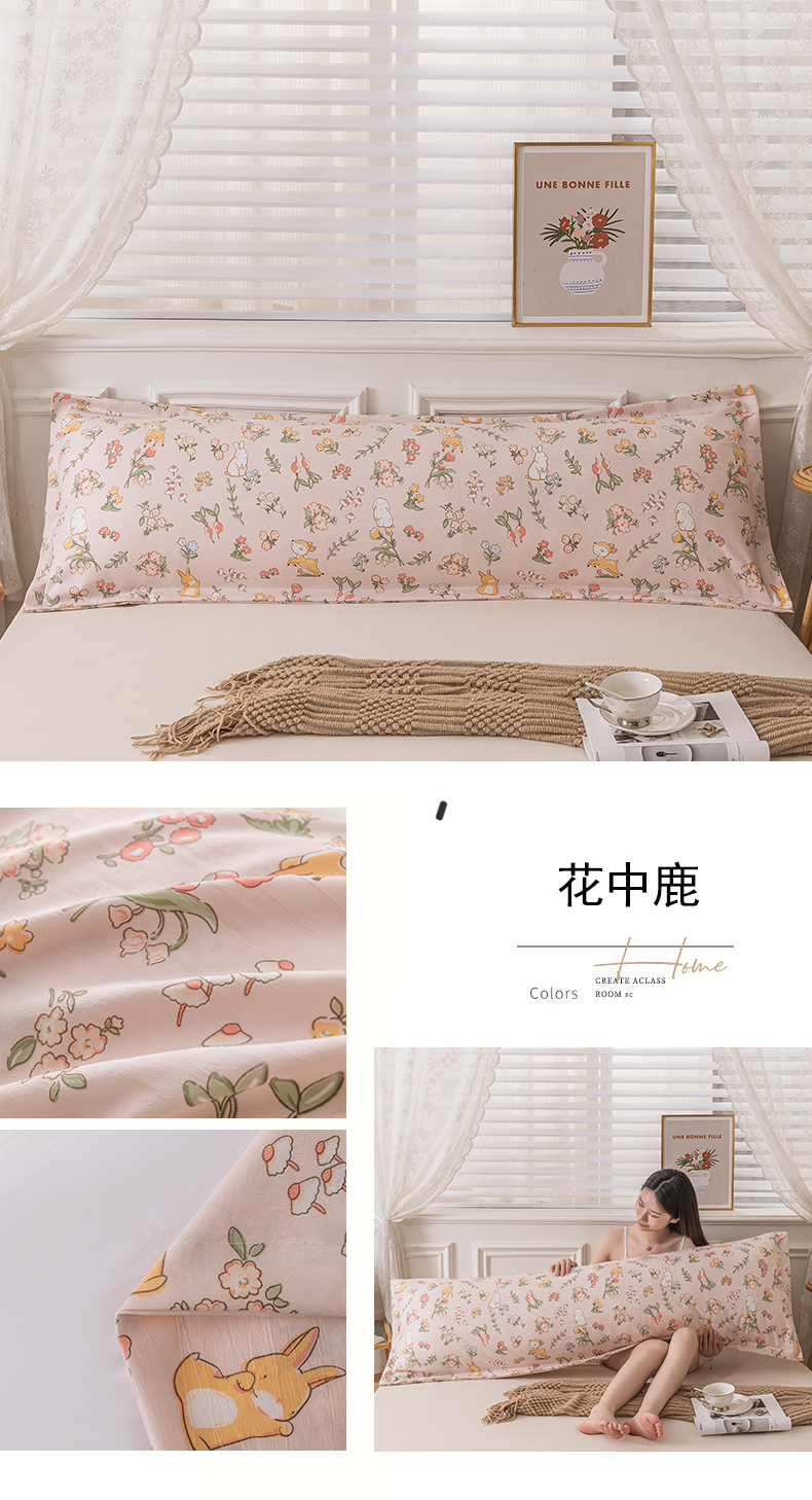 商品名称:新款水洗棉麻单人枕头套亲肤双人枕套 花中鹿