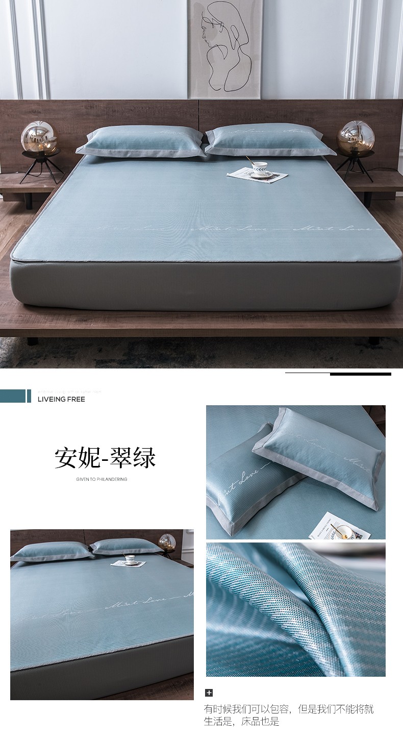 1800D提花冰丝床笠款凉席三件套-安妮 安妮-绿