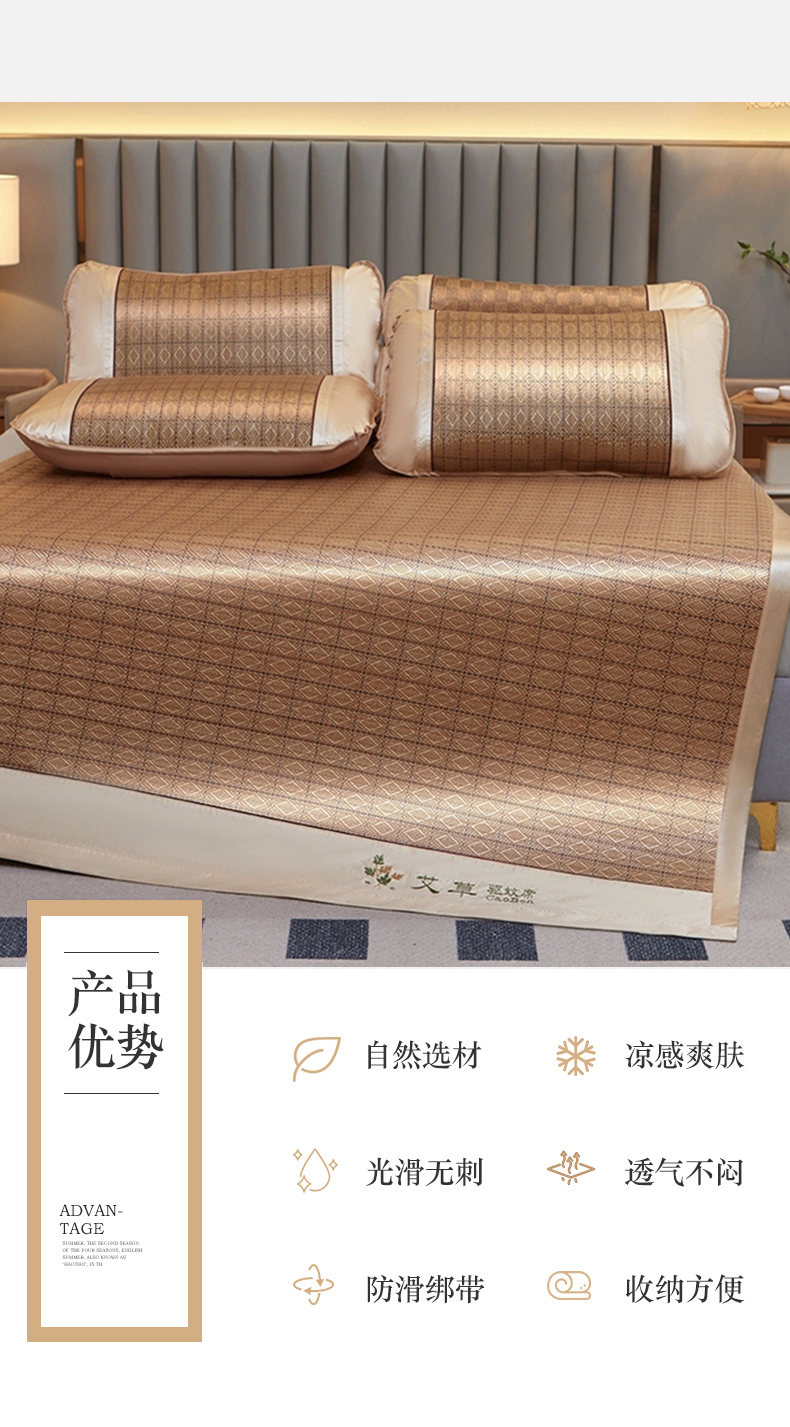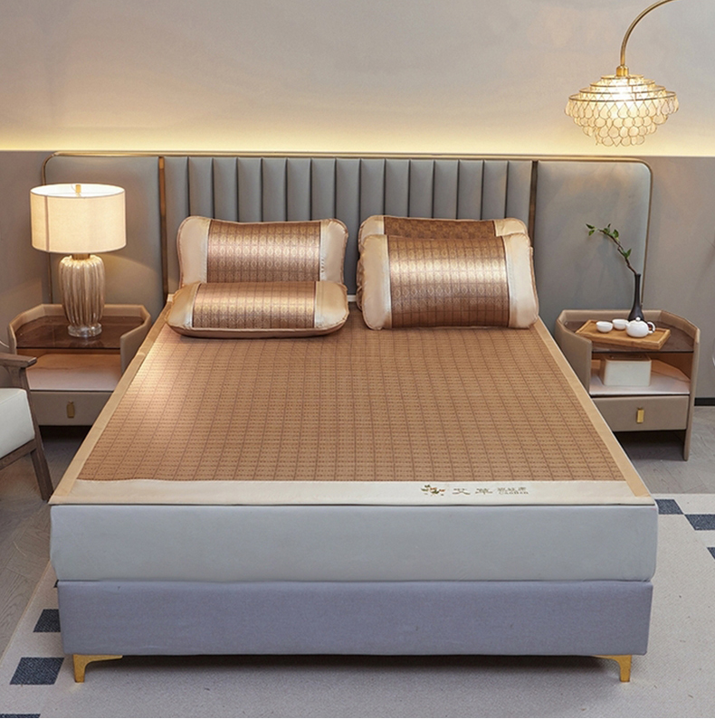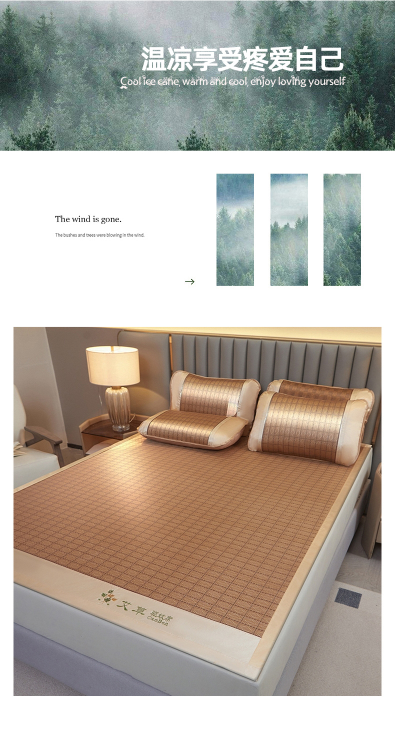 (总)席都 2024新款冰藤席床席三件套-三明治-冰藤席系列,灰,金,绿,粉,蓝
