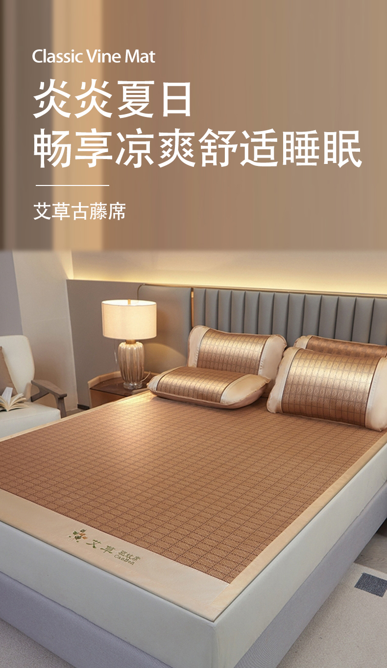 席都凉席工厂店 2024新款方角古藤席 艾草-罗马格