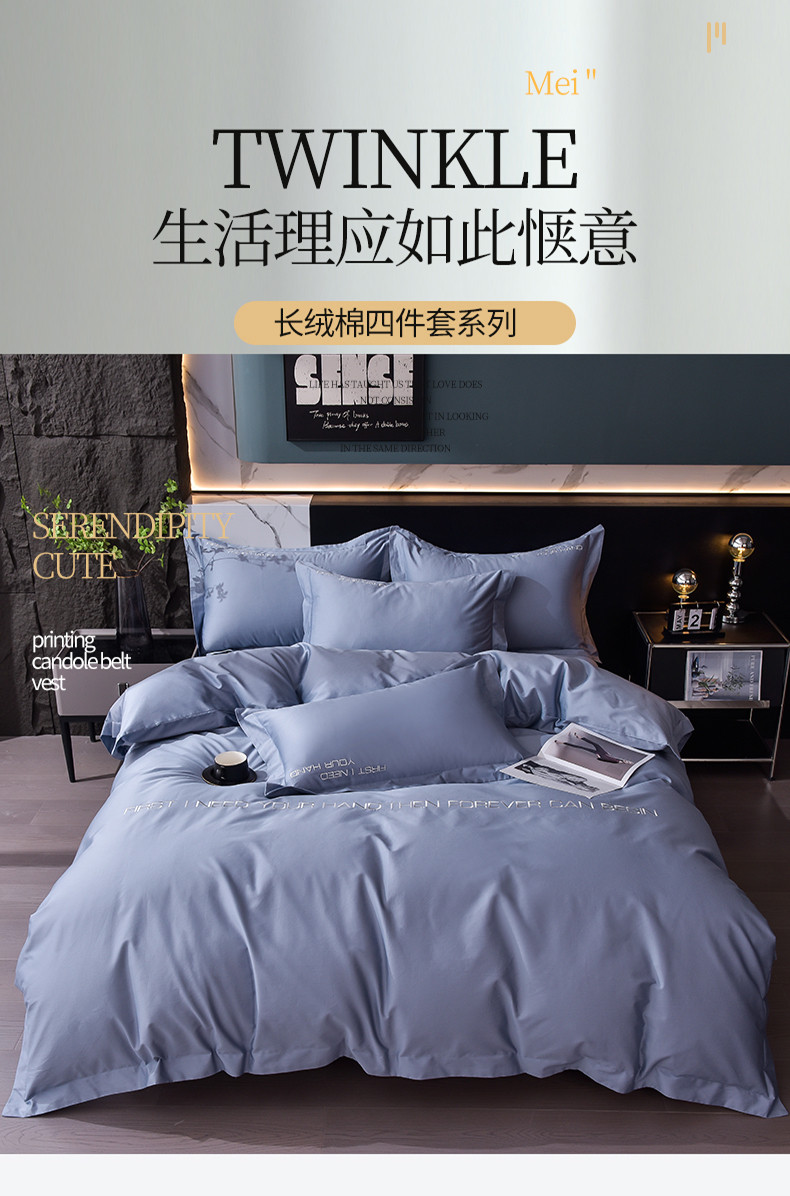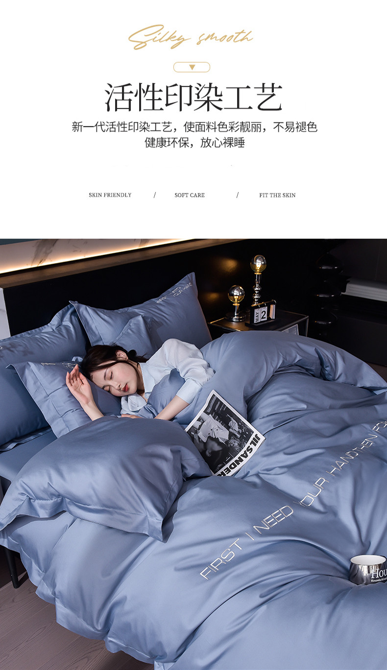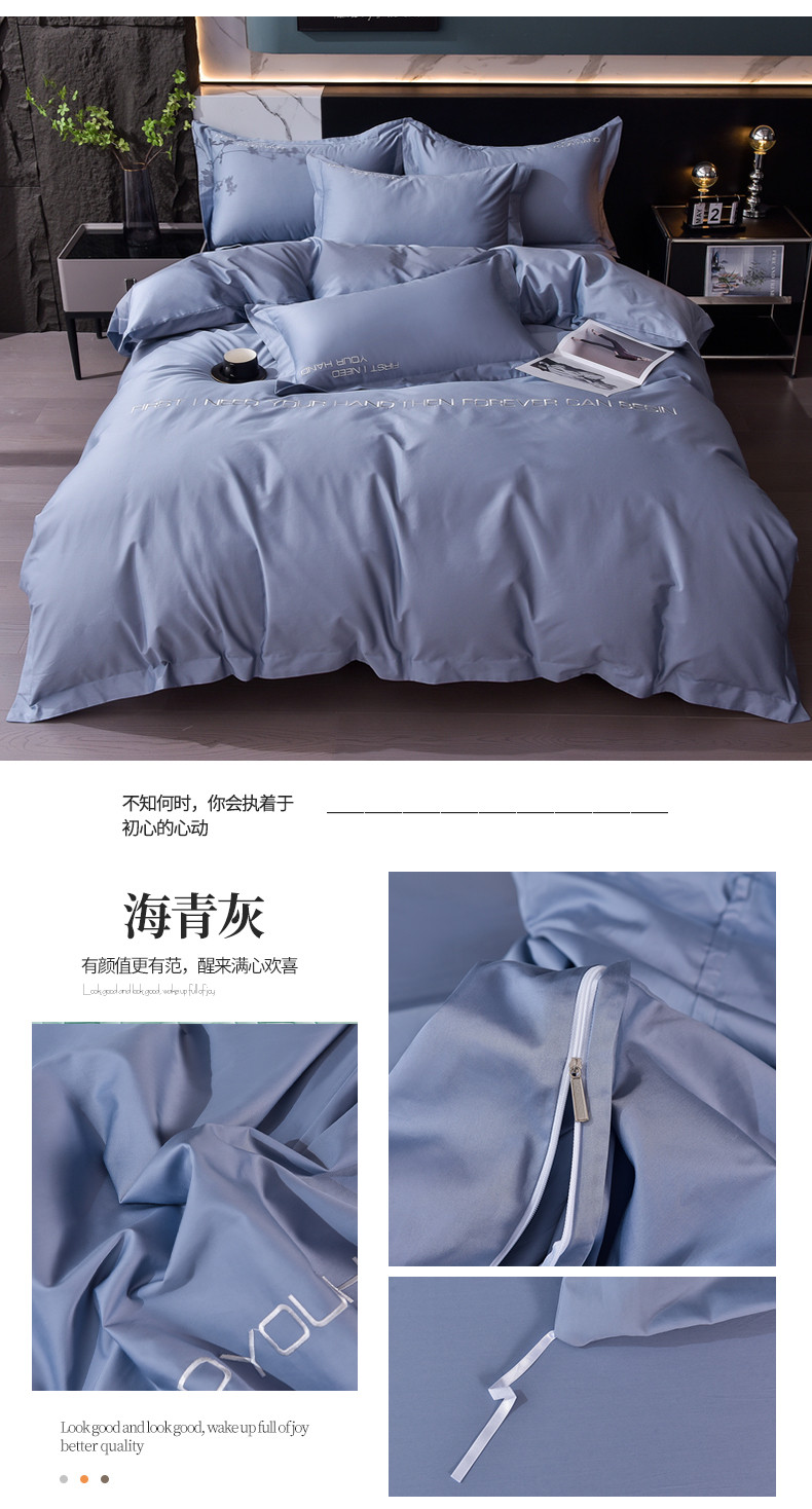 商品名称:米奈2024新款100支长绒棉四件套《莱恩》 海青灰