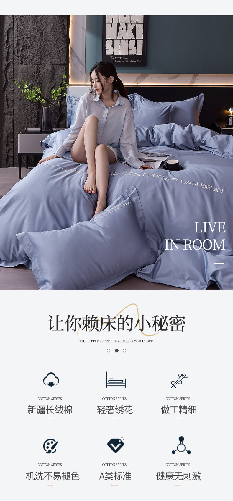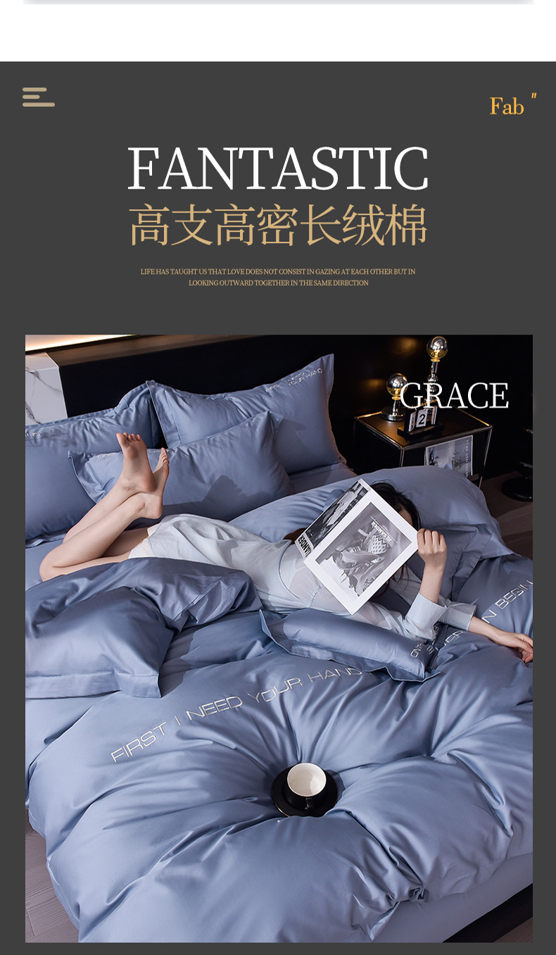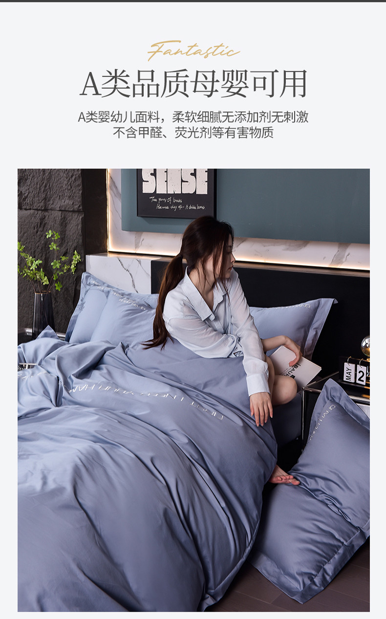 商品名称:米奈2024新款100支长绒棉四件套《莱恩》 海青灰