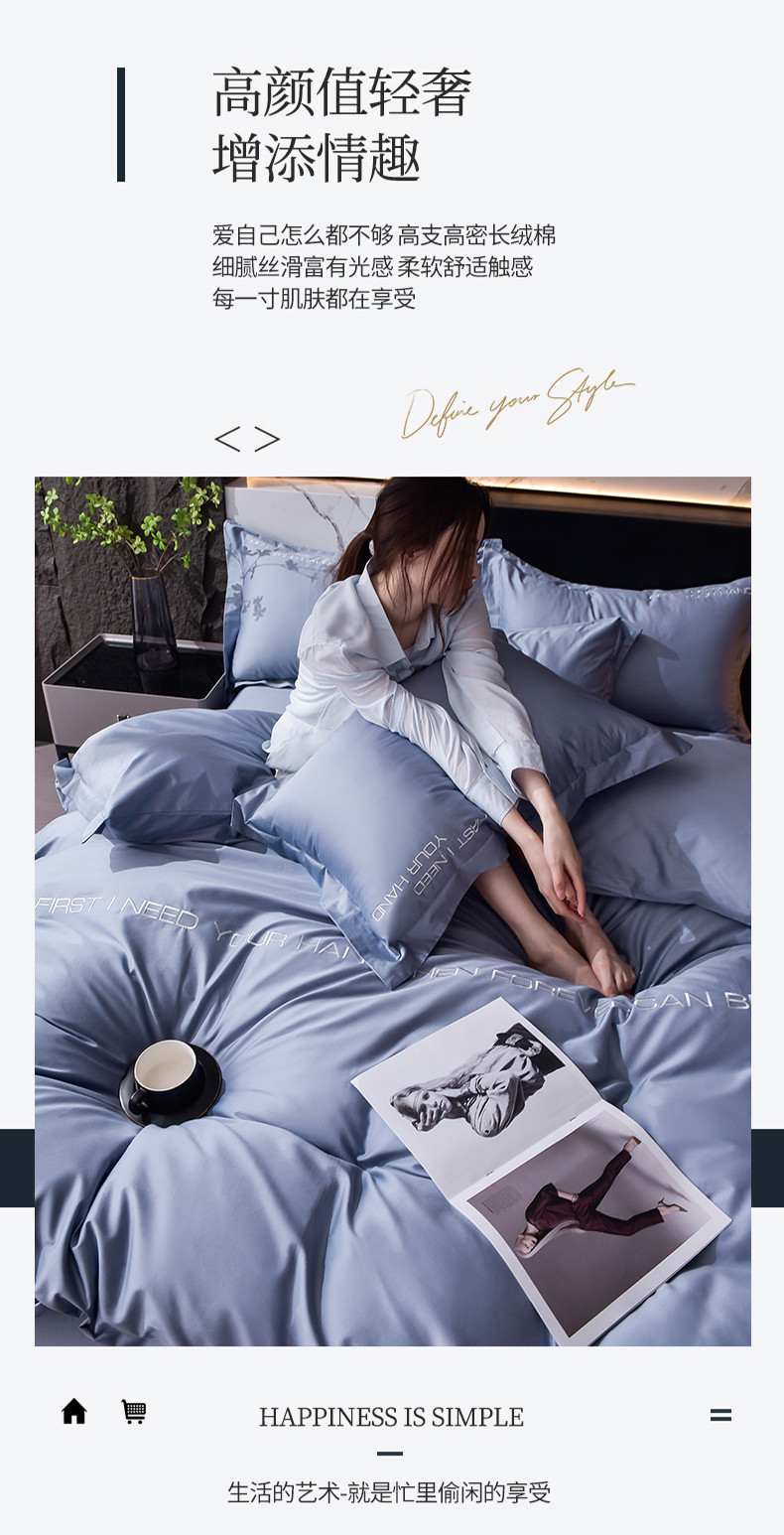 (总)米奈家居 2024新款长绒棉纯棉刺绣四件套-罗琳-简约风,冰川灰,湖蓝,蜜桃粉,藕粉,香槟,香芋紫,象牙白