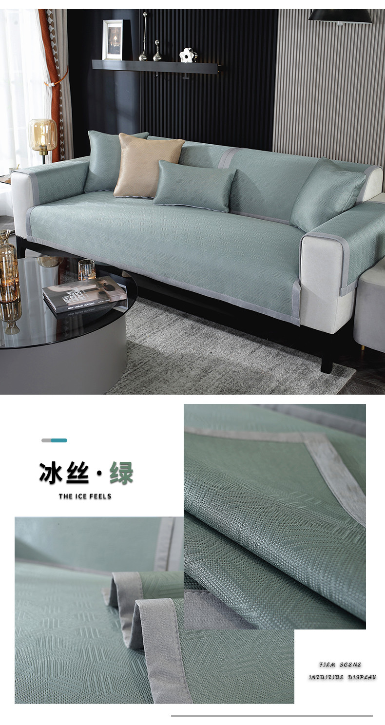 (总)共鸣沙发垫 2022新款冰丝麻沙发垫,冰丝麻灰色,冰丝麻蓝色,冰丝麻绿色