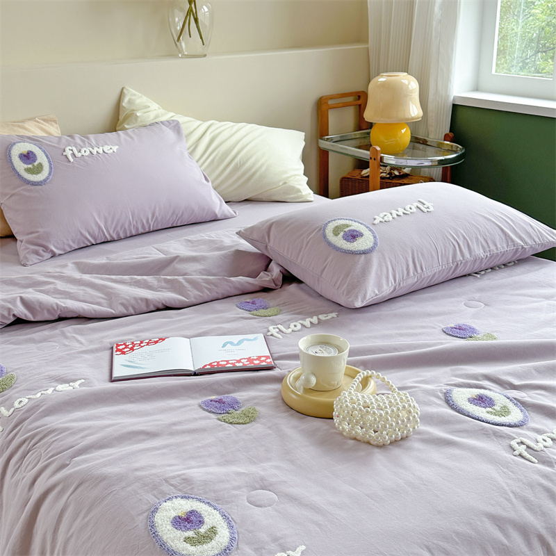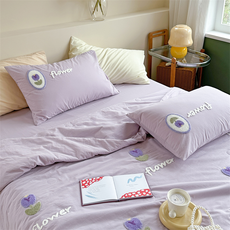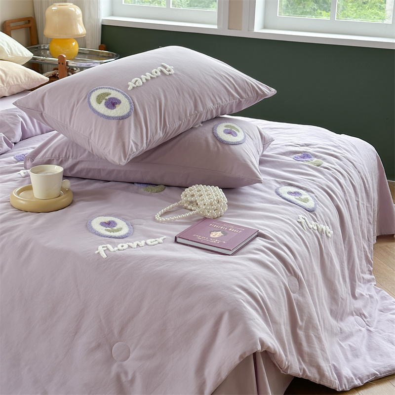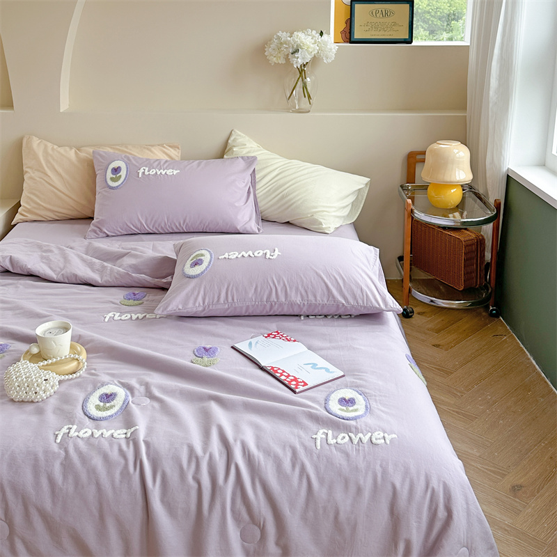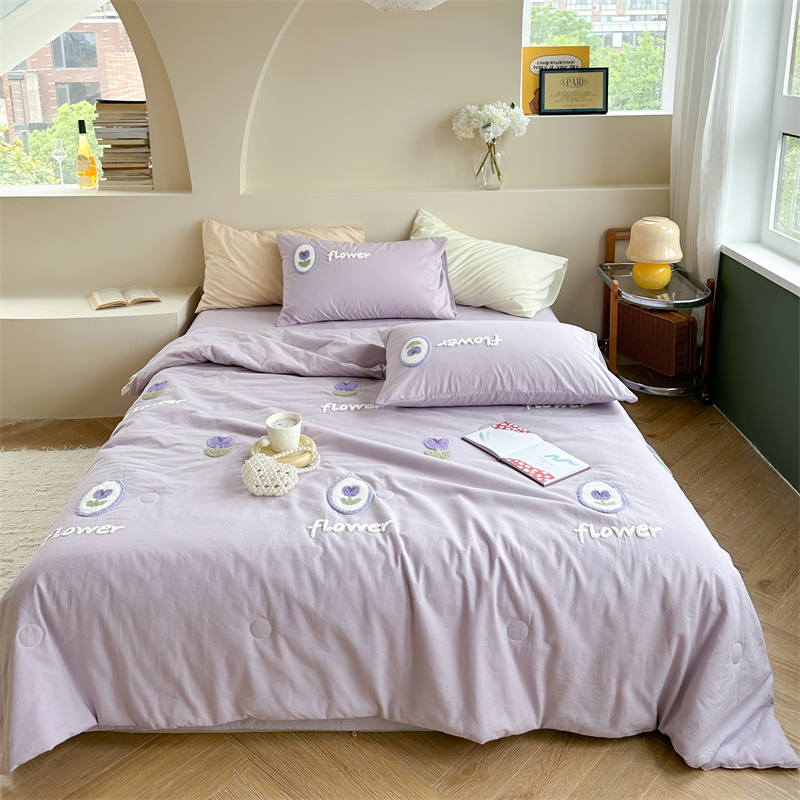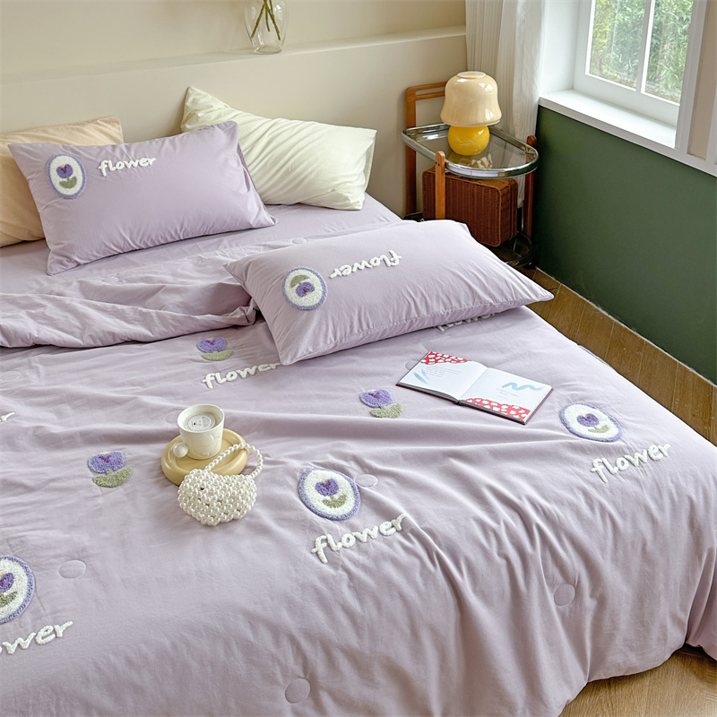 柚子YOUTH 2023新款马卡龙全棉水洗棉毛巾绣夏被四件套 紫郁香