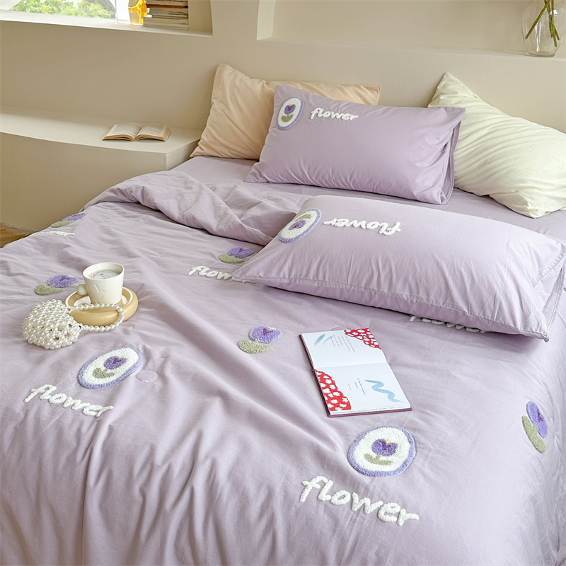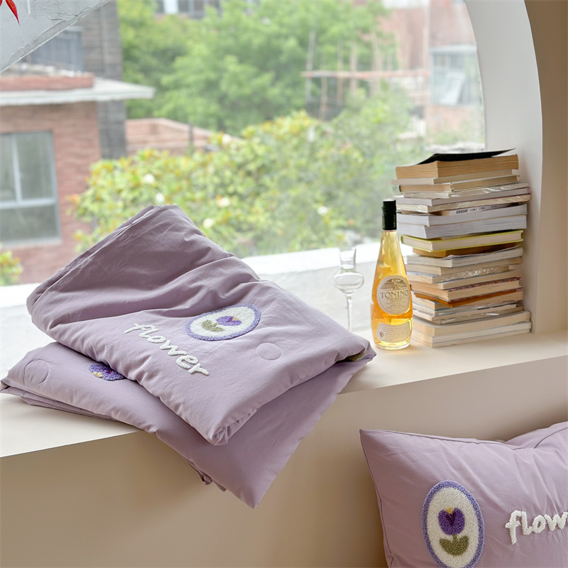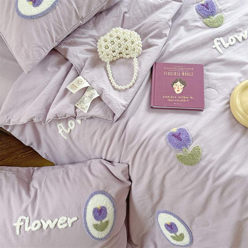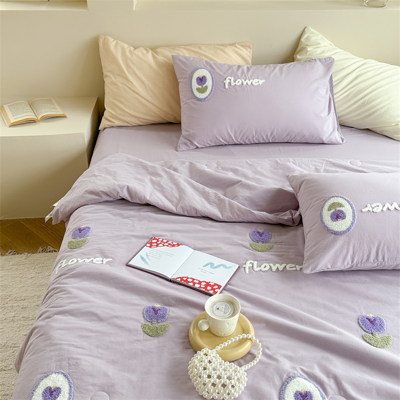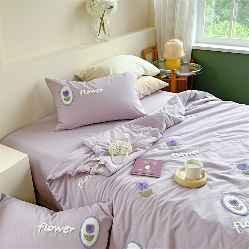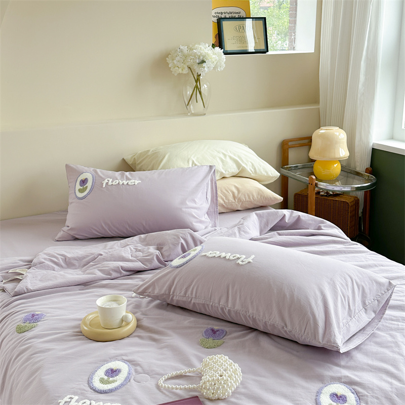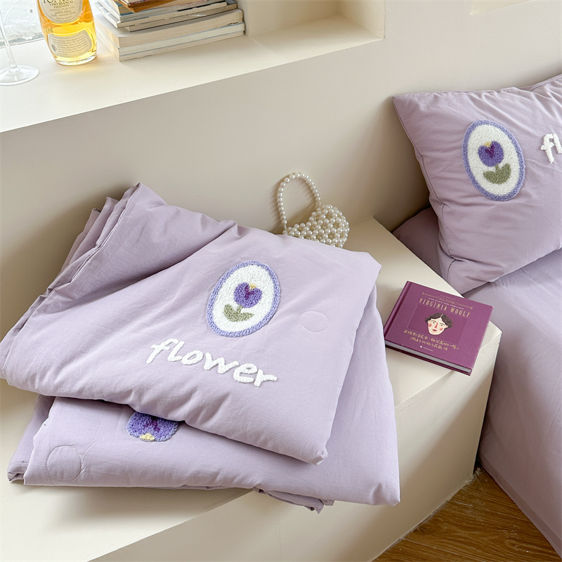 柚子YOUTH 2023新款马卡龙全棉水洗棉毛巾绣夏被四件套 紫郁香