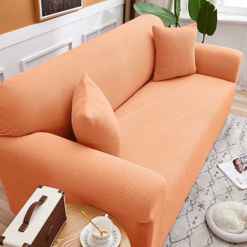 商品名称:丝绮鹿 2023新款玉米粒全包沙发套 欧式沙发-香桔橙