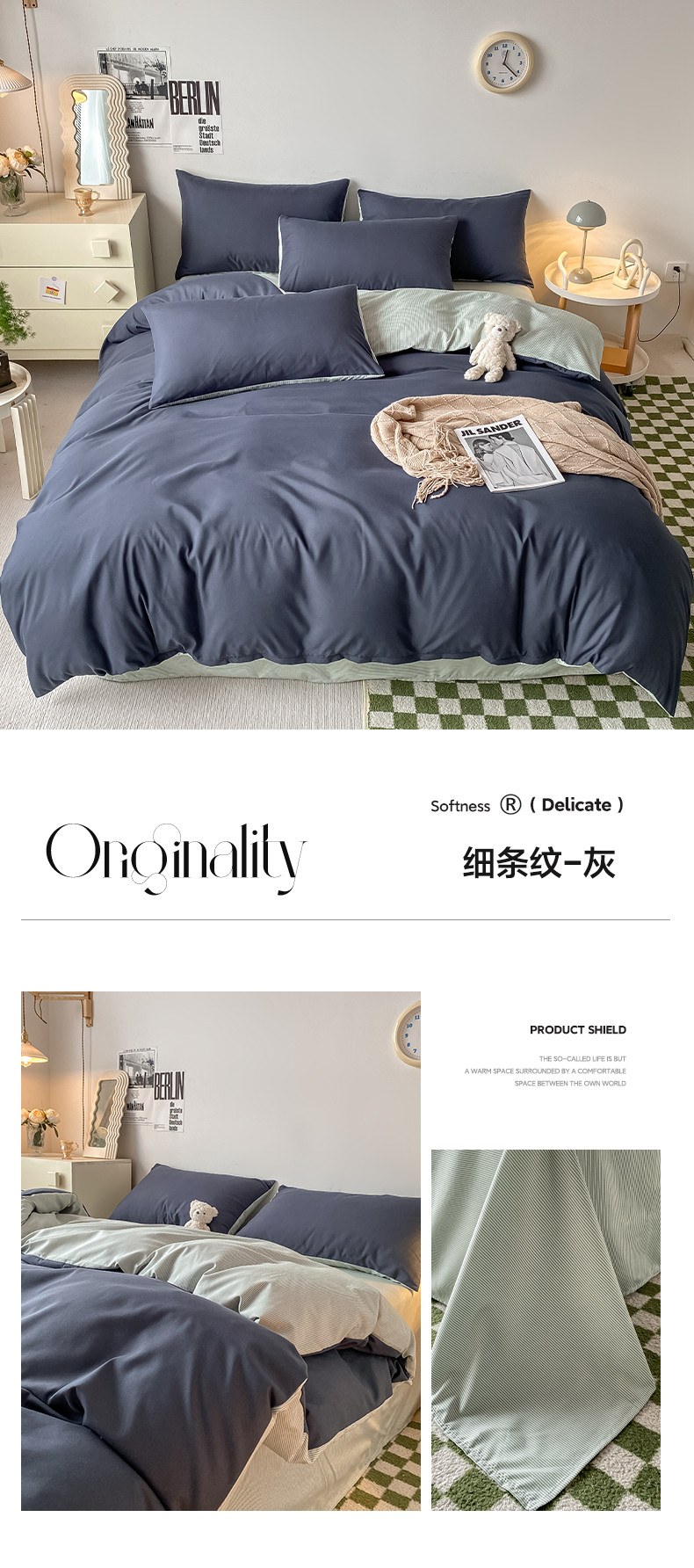当前位置: 91家纺网 > 商品网购 > 床品套件 > 四件套 > 普通磨毛四件套 > 阿曼达 2023新款水洗亲肤磨毛四件套 细条纹-灰