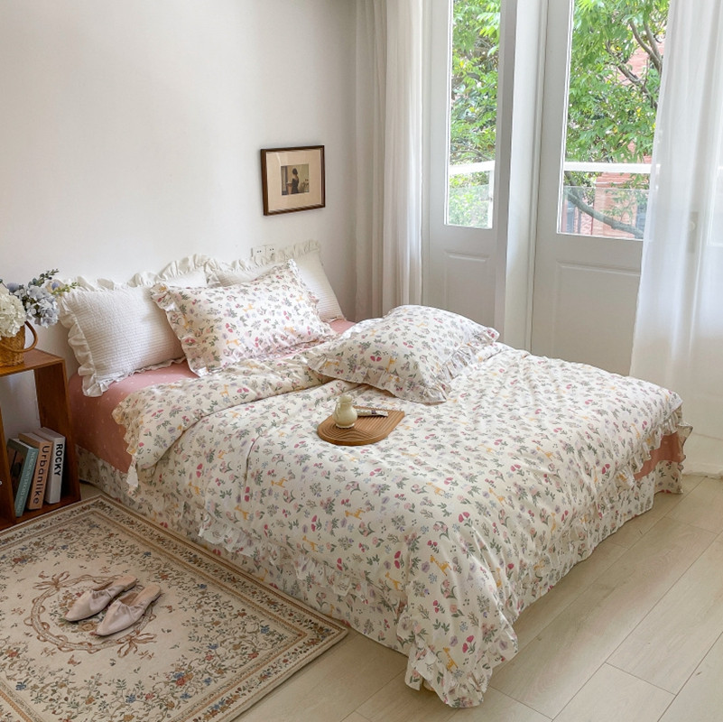 商品名称:棉生活 2025新款洛丽塔花边款全棉四件套 又见花开