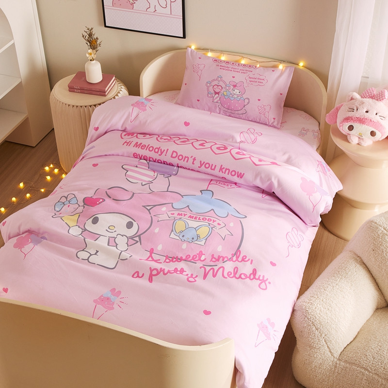 蘭菲 2023新款幼儿园全棉印染三丽鸥全棉大版卡通三件套 花园宝宝
