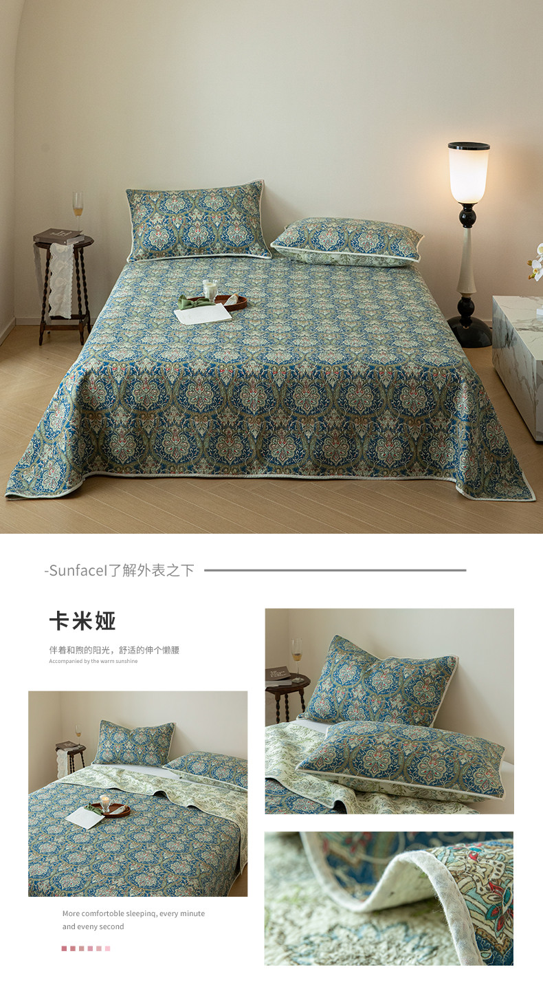 上喜 热卖双面全棉印花密绗床盖三件套 卡米娅