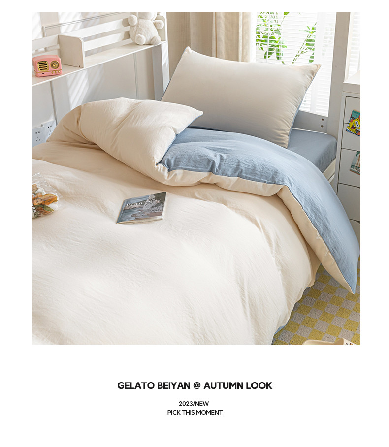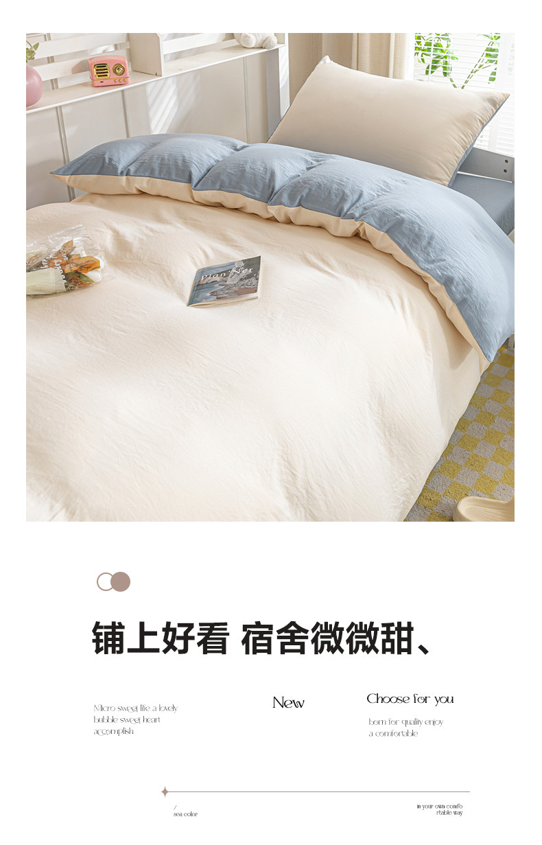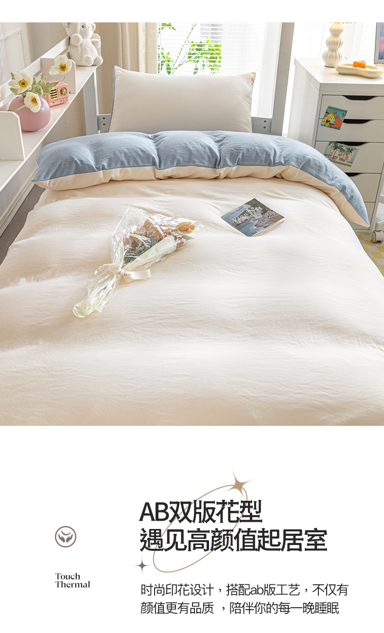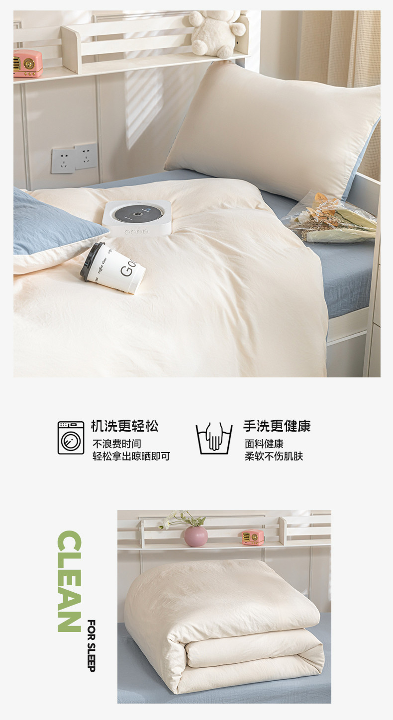 当前位置: 91家纺网 > 商品网购 > 床品套件 > 四件套 > 水洗棉四件套 > 古吉梦 2024新款纯色-双拼水洗棉学生三件套 纯色-奶昔白+海青