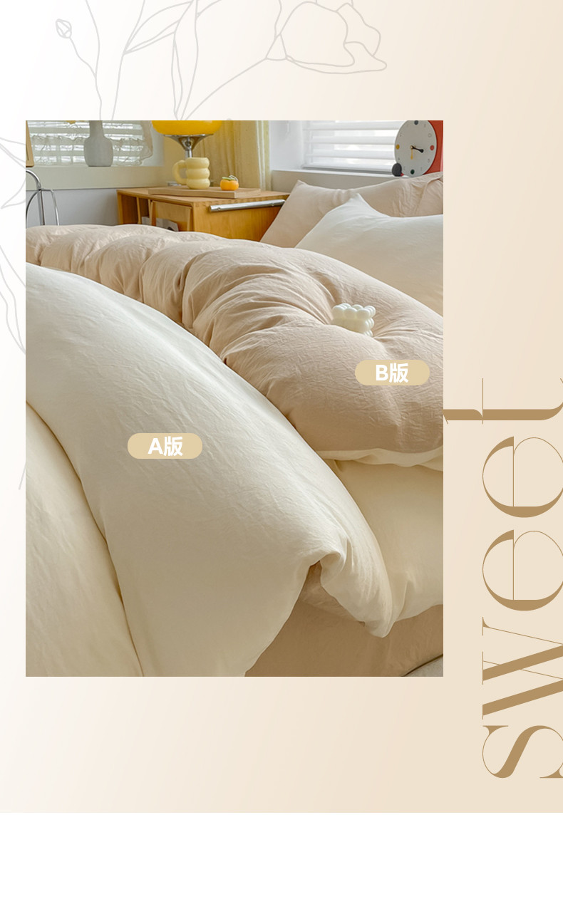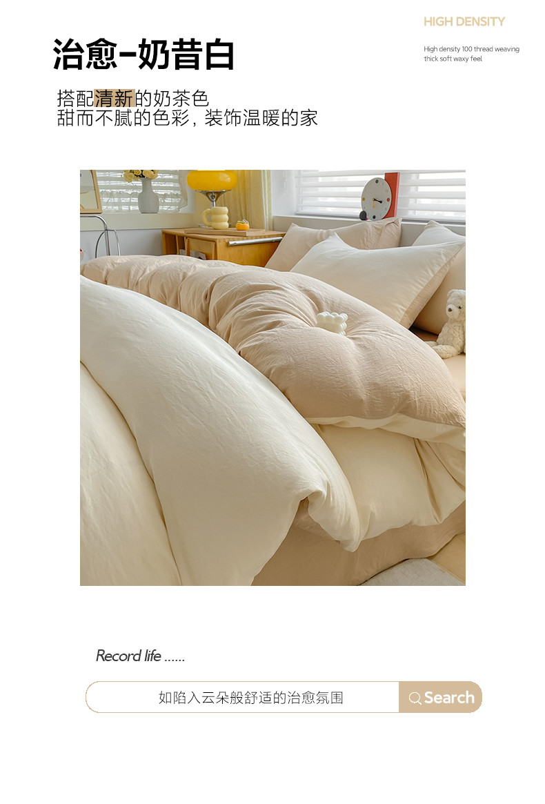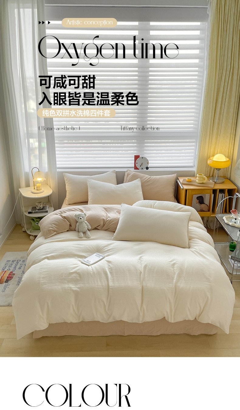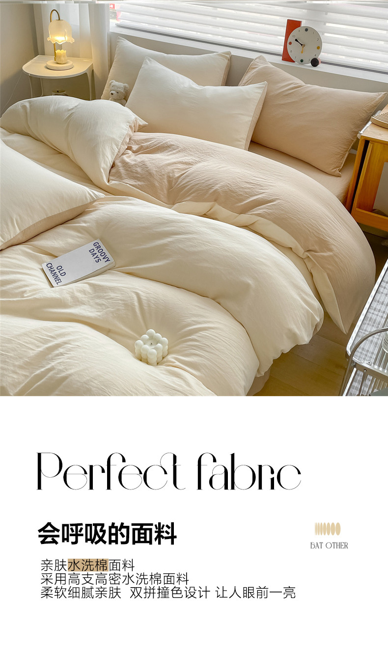 当前位置: 91家纺网 > 商品网购 > 床品套件 > 四件套 > 水洗棉四件套 > 古吉梦 2023新款纯色-双拼水洗棉四件套 纯色-奶昔白+奶茶