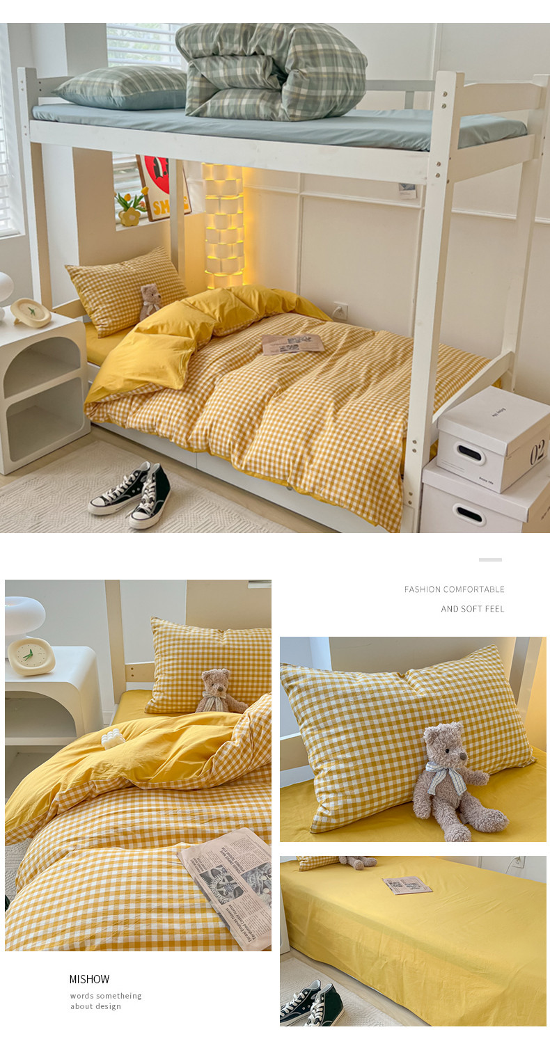 当前位置: 91家纺网 > 商品网购 > 床品套件 > 四件套 > 水洗棉四件套 > 盼季 2023新款无印风格子纯色水洗棉四件套 布丁黄