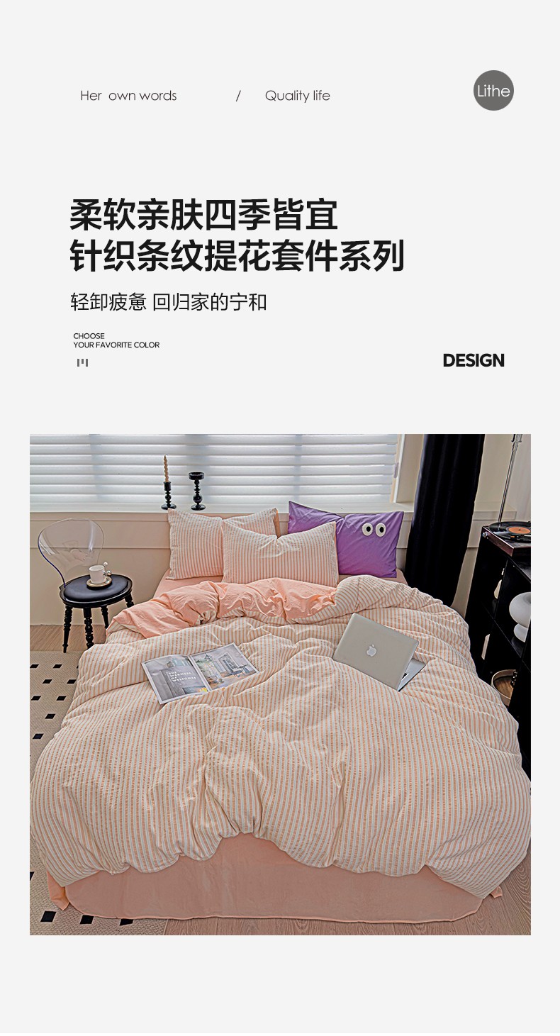 商品名称:水墨江南 2023新款纯色提花针织条四件套 提花-玉条条
