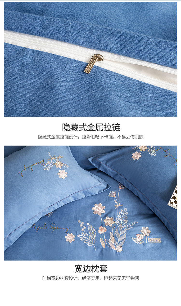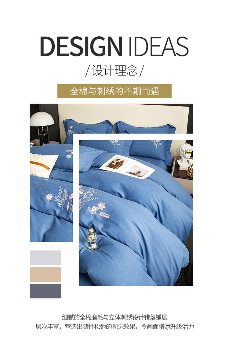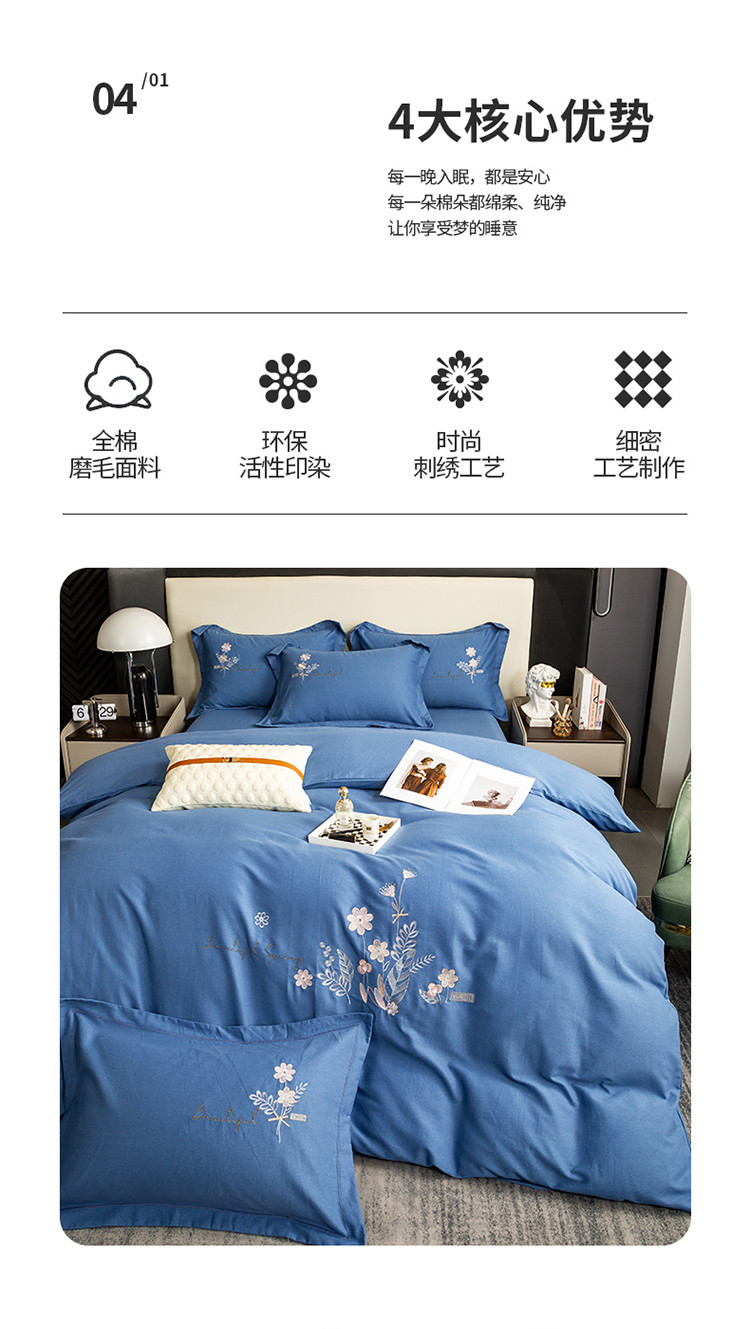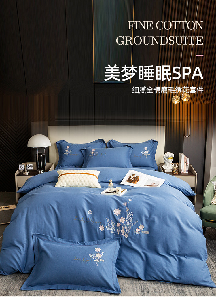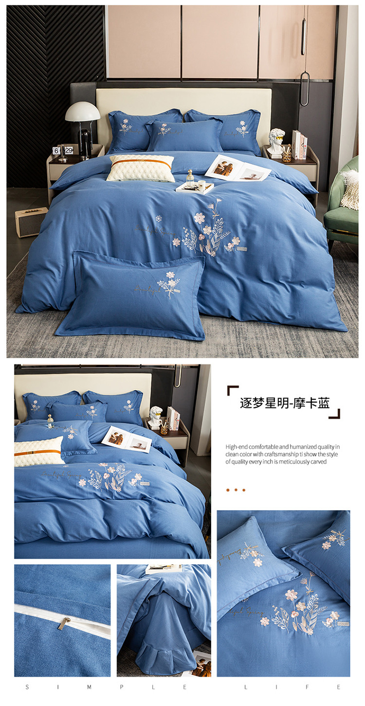 商品名称:昊翔2024新款绣花全棉磨毛刺绣工艺款四件套量大优惠逐梦星明-摩卡蓝