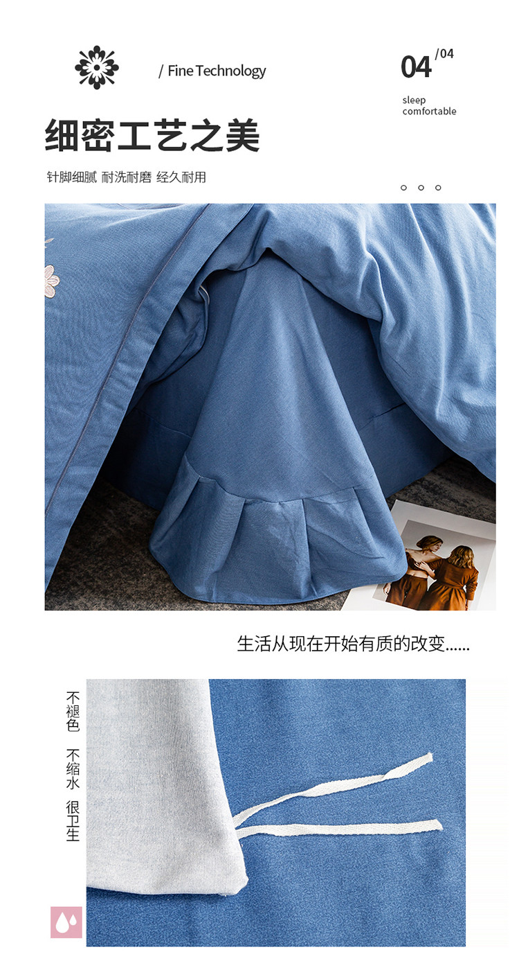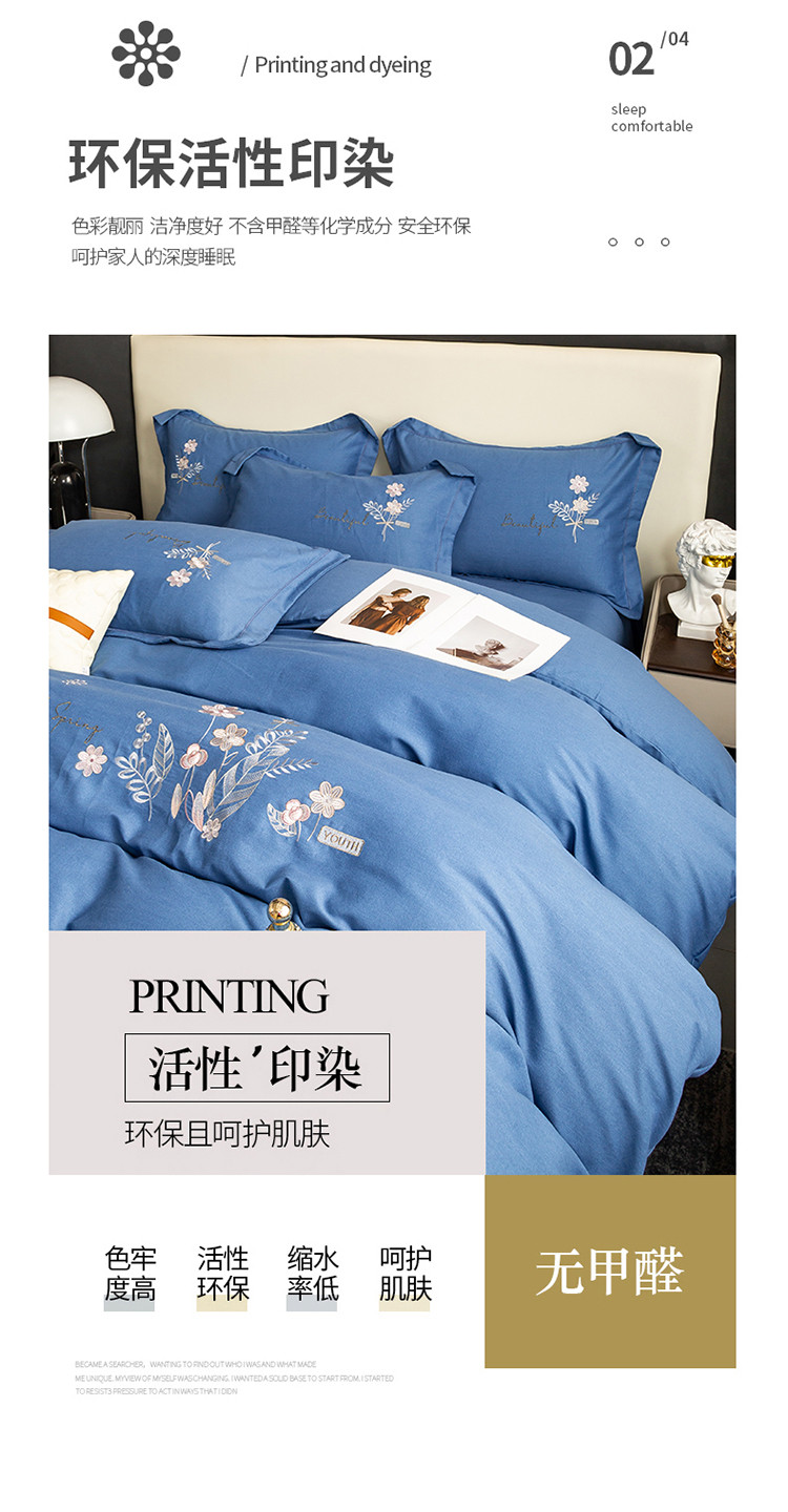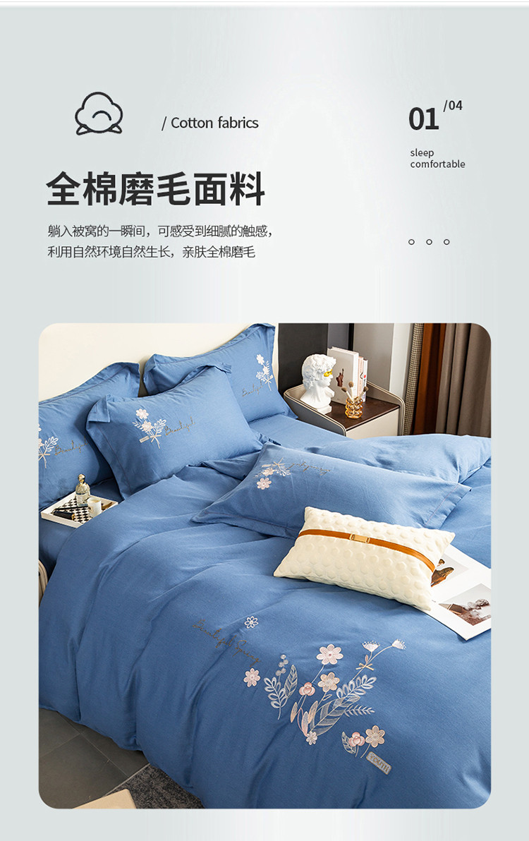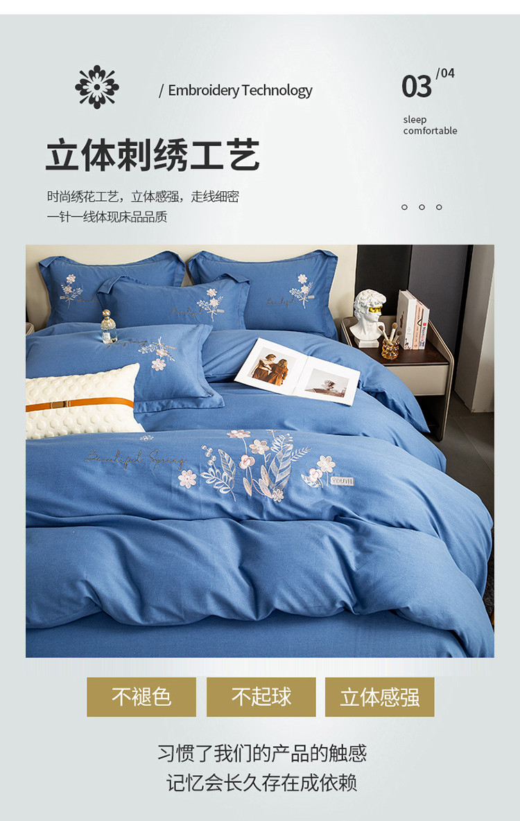 商品名称:昊翔2024新款绣花全棉磨毛刺绣工艺款四件套量大优惠逐梦星明-摩卡蓝