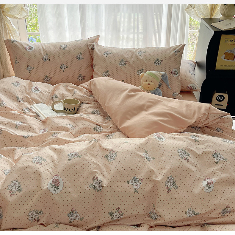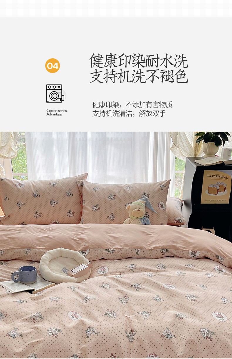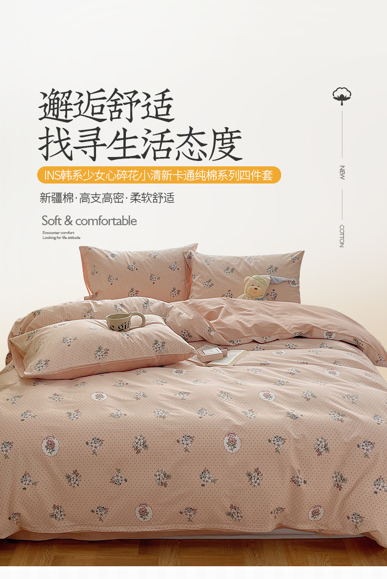 桃子 2023新款ins韩系少女心碎花小清新卡通纯棉系列四件套 棉-海德花园