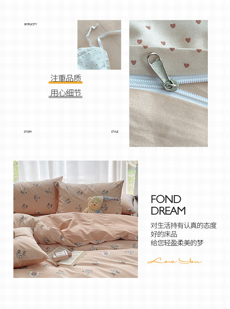 商品名称:桃子 2023新款ins韩系少女心碎花小清新卡通纯棉系列四件套 棉-海德花园