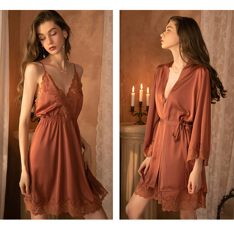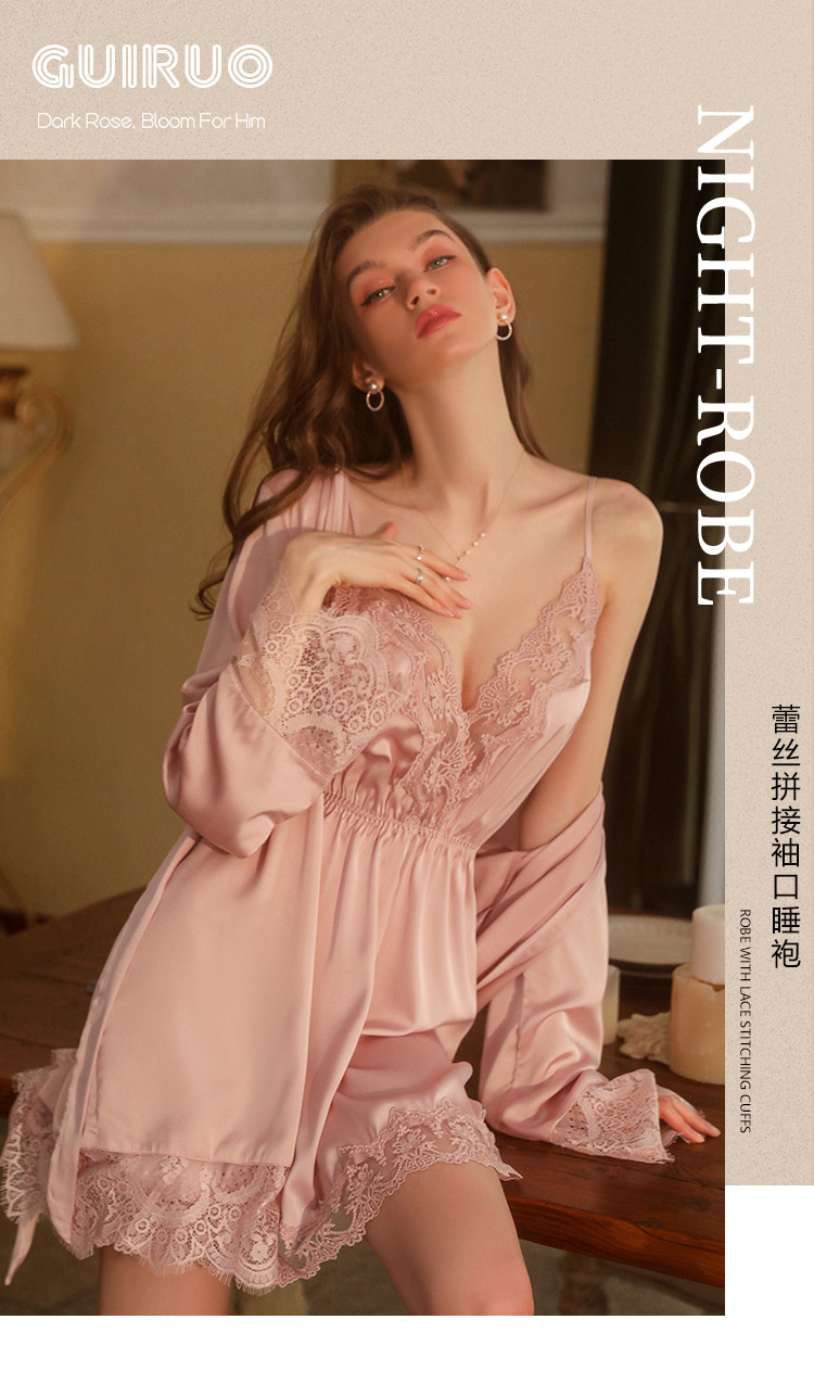 洛兰沙 2023新款外贸冰丝蕾丝吊带和两件套 267欧拉藕粉