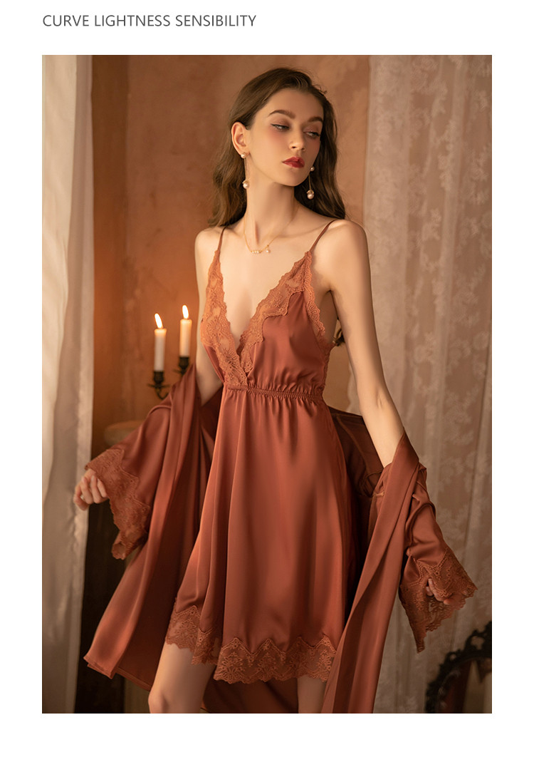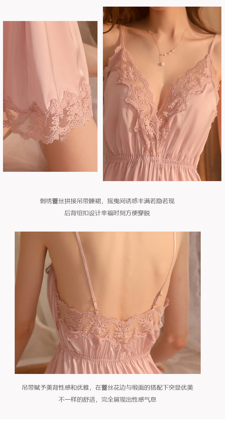 商品名称:洛兰沙 2023新款外贸冰丝蕾丝吊带和两件套 267欧拉藕粉