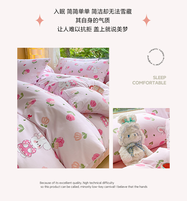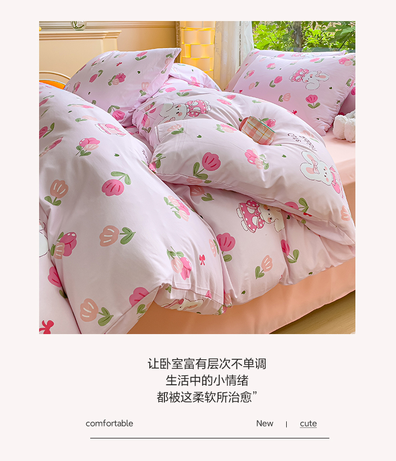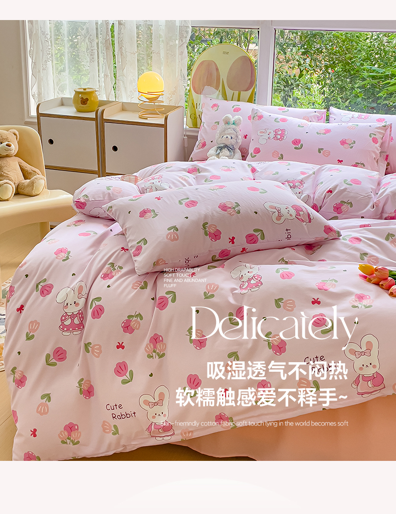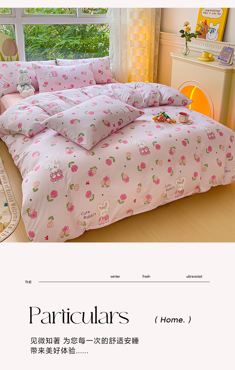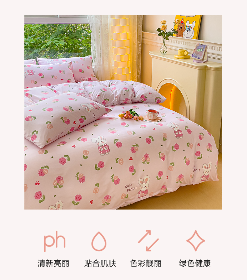 当前位置: 91家纺网 > 商品网购 > 床品套件 > 四件套 > 水洗棉四件套 > 超柔水洗棉双层纱四件套小碎花被套床笠床单学生宿舍三件套 可爱兔