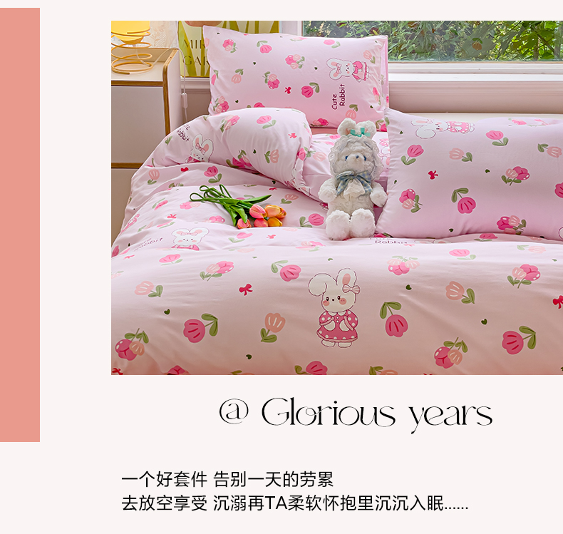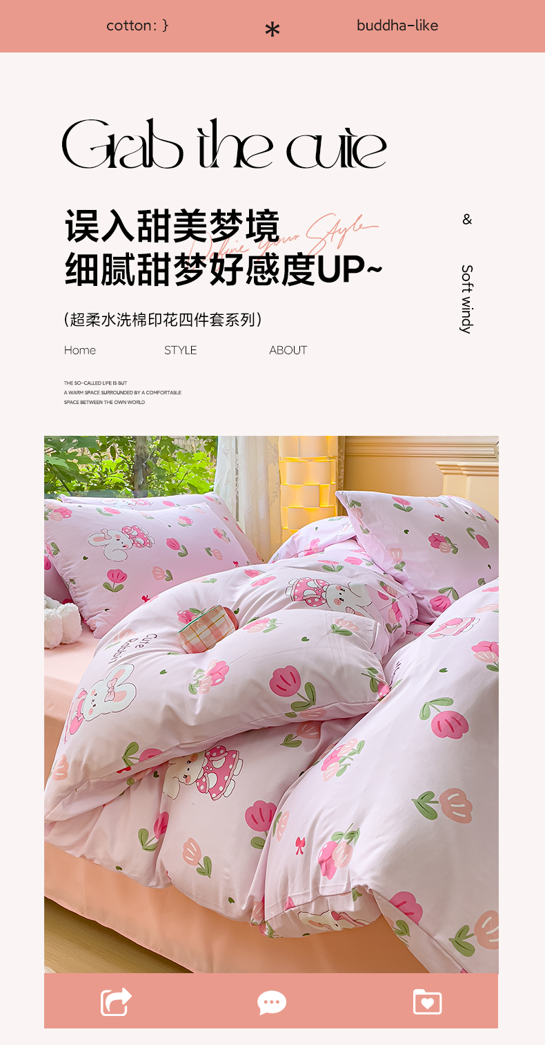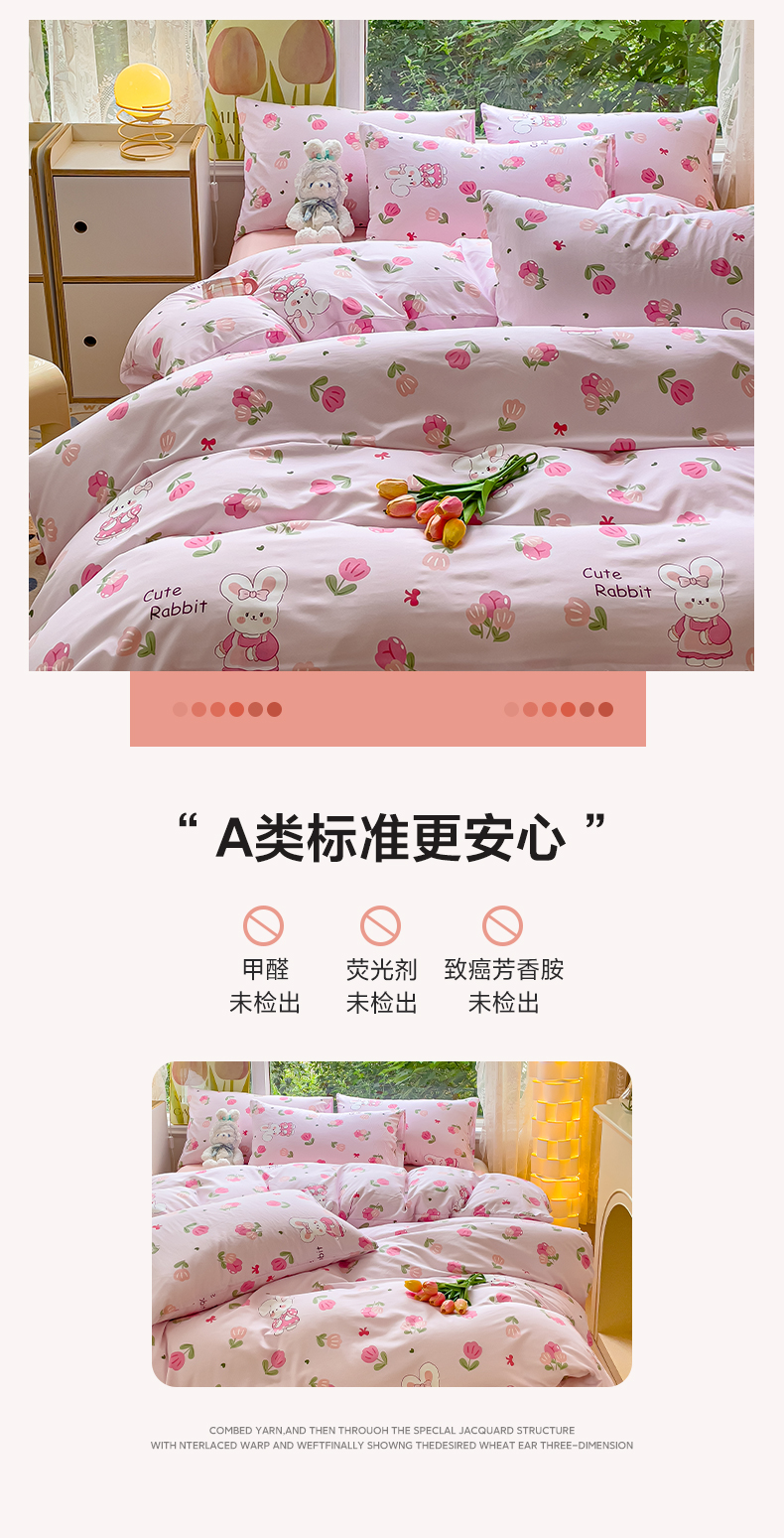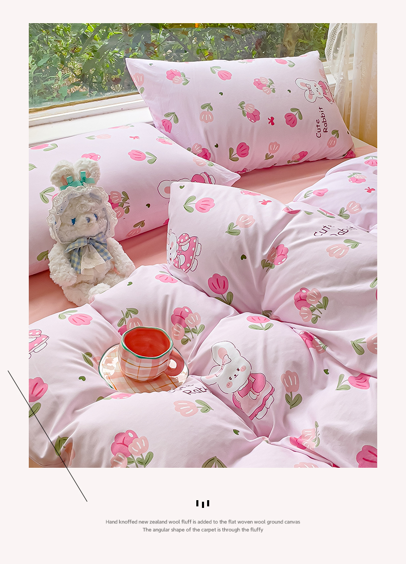 当前位置: 91家纺网 > 商品网购 > 床品套件 > 四件套 > 水洗棉四件套 > 超柔水洗棉双层纱四件套小碎花被套床笠床单学生宿舍三件套 可爱兔