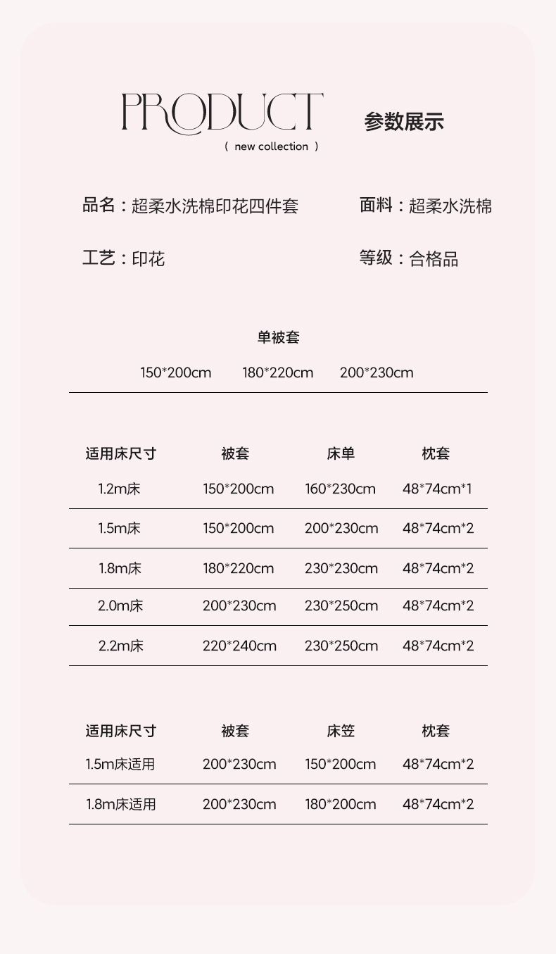 1.8m床笠款四件套(被套200*230cm) | ¥55.00 |