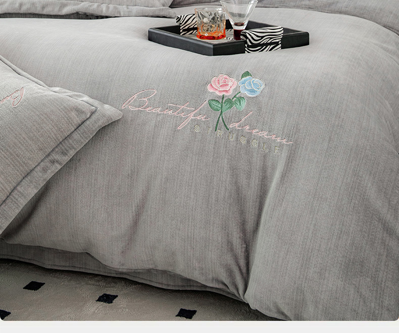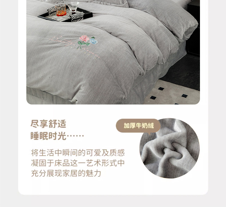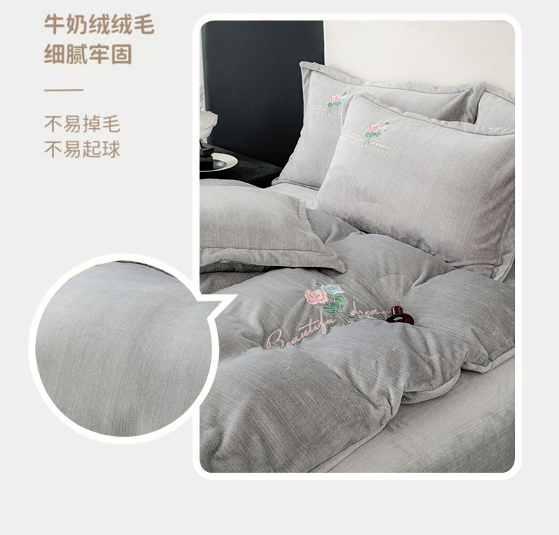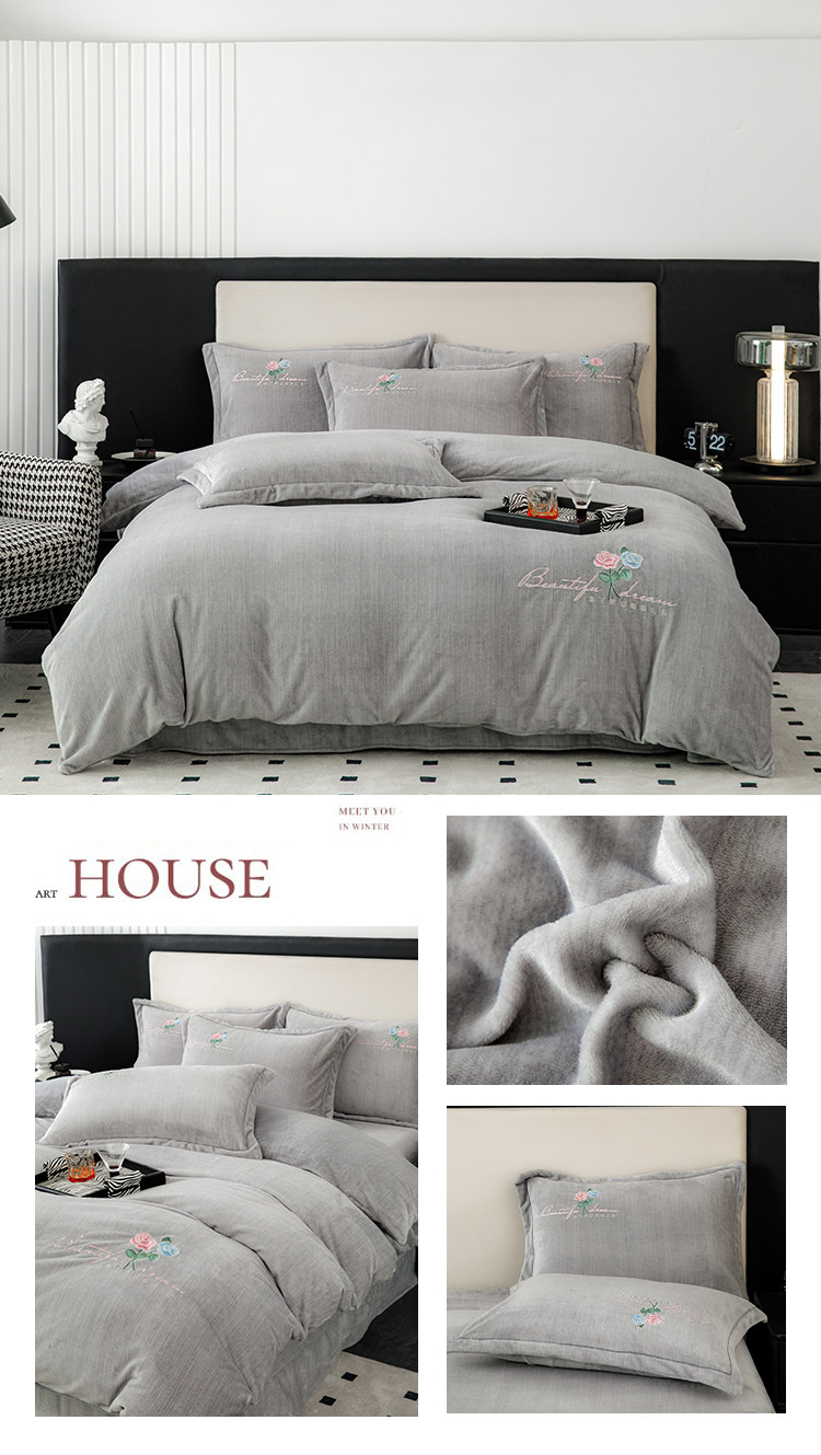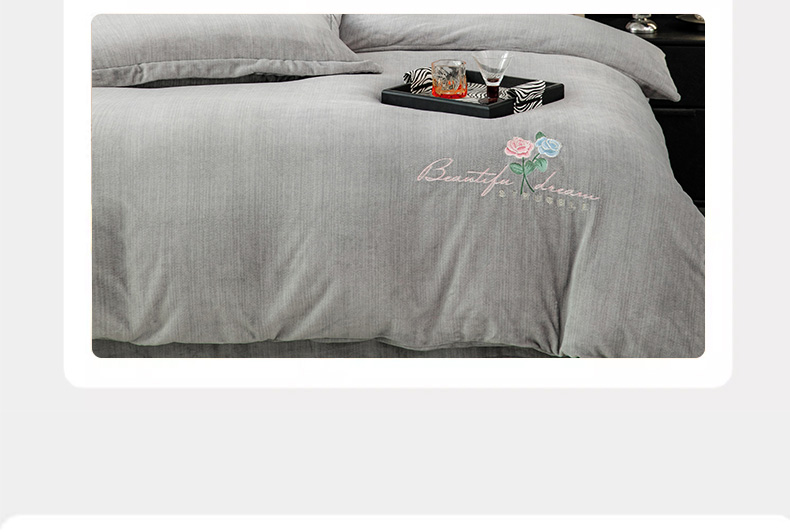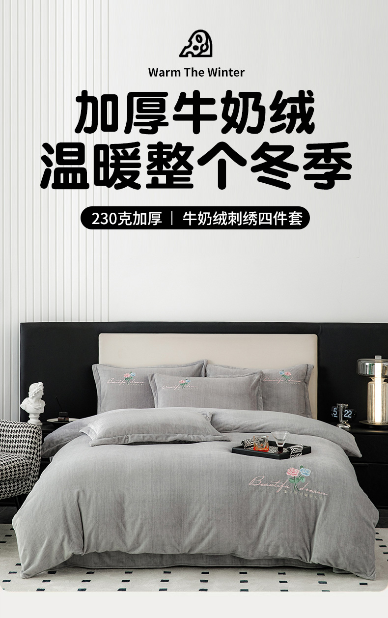 (总)新款230克肌理纹绣花牛奶绒四件套可定做