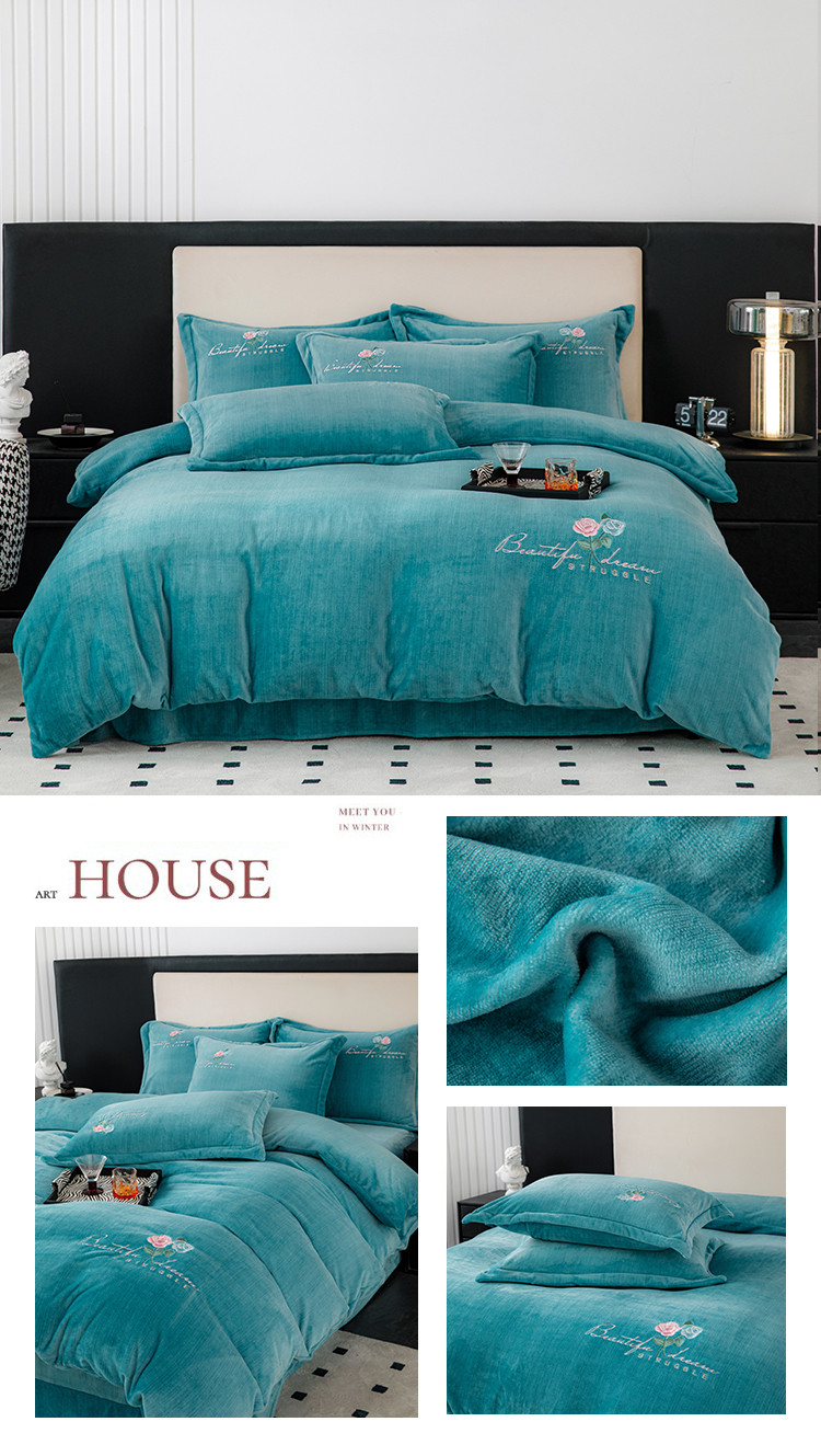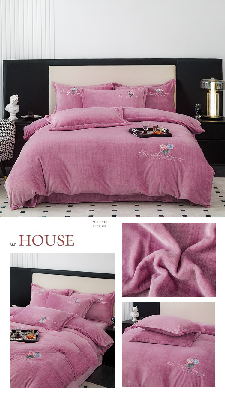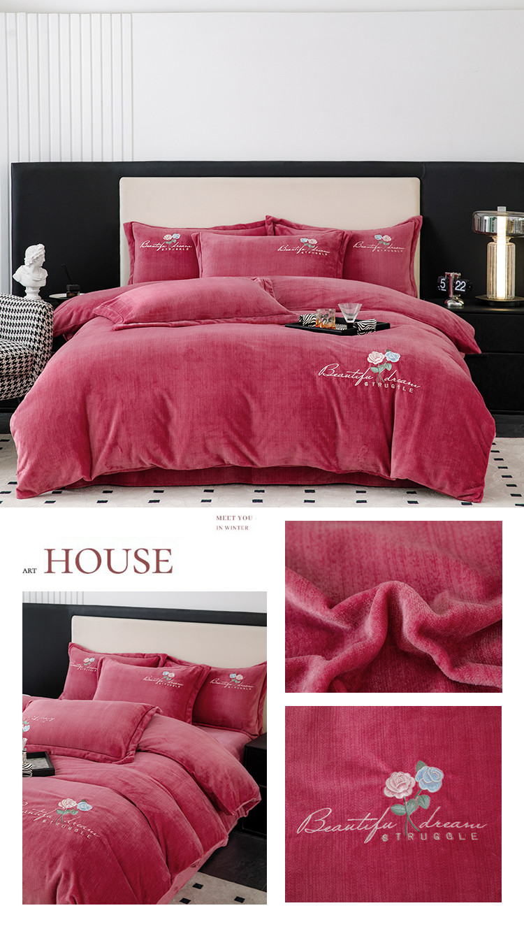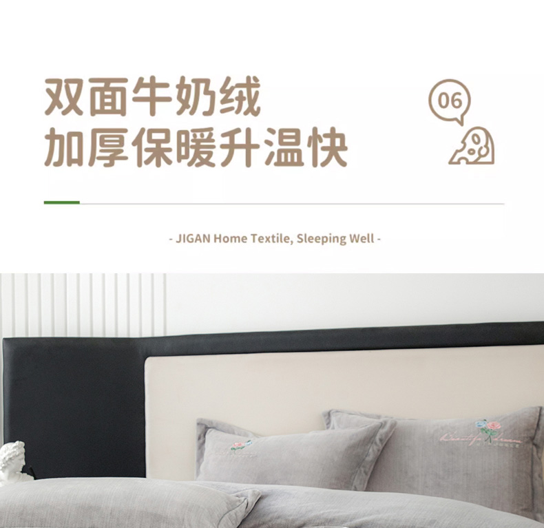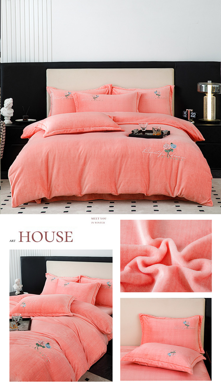 (总)新款230克肌理纹绣花牛奶绒四件套可定做