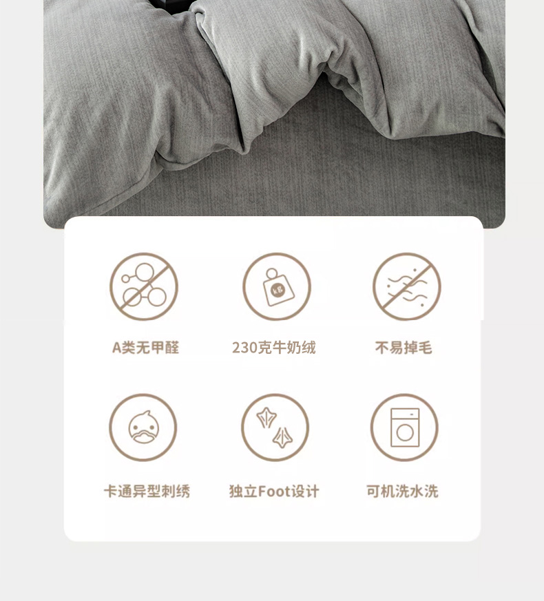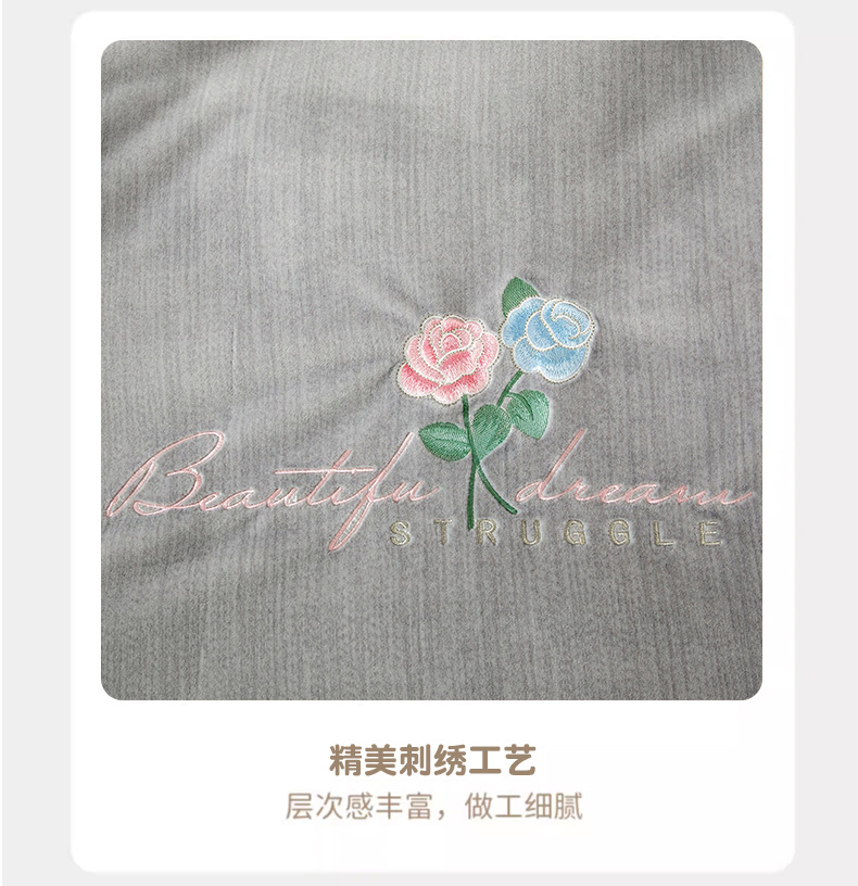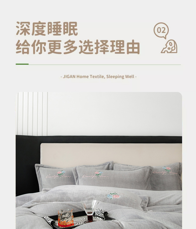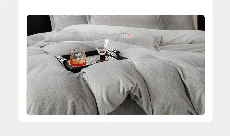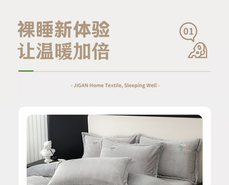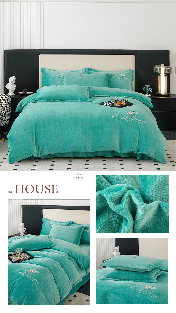 (总)新款230克肌理纹绣花牛奶绒四件套可定做