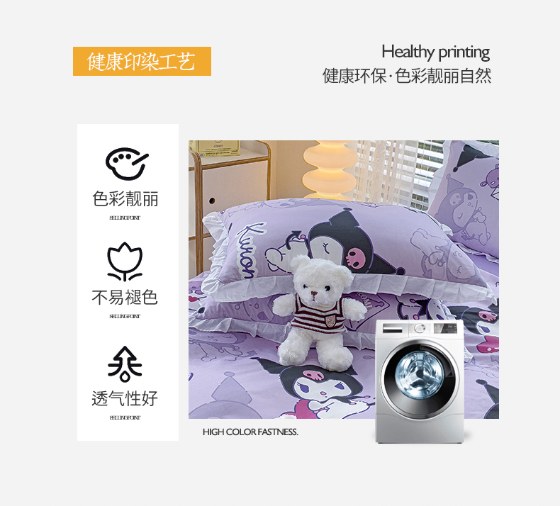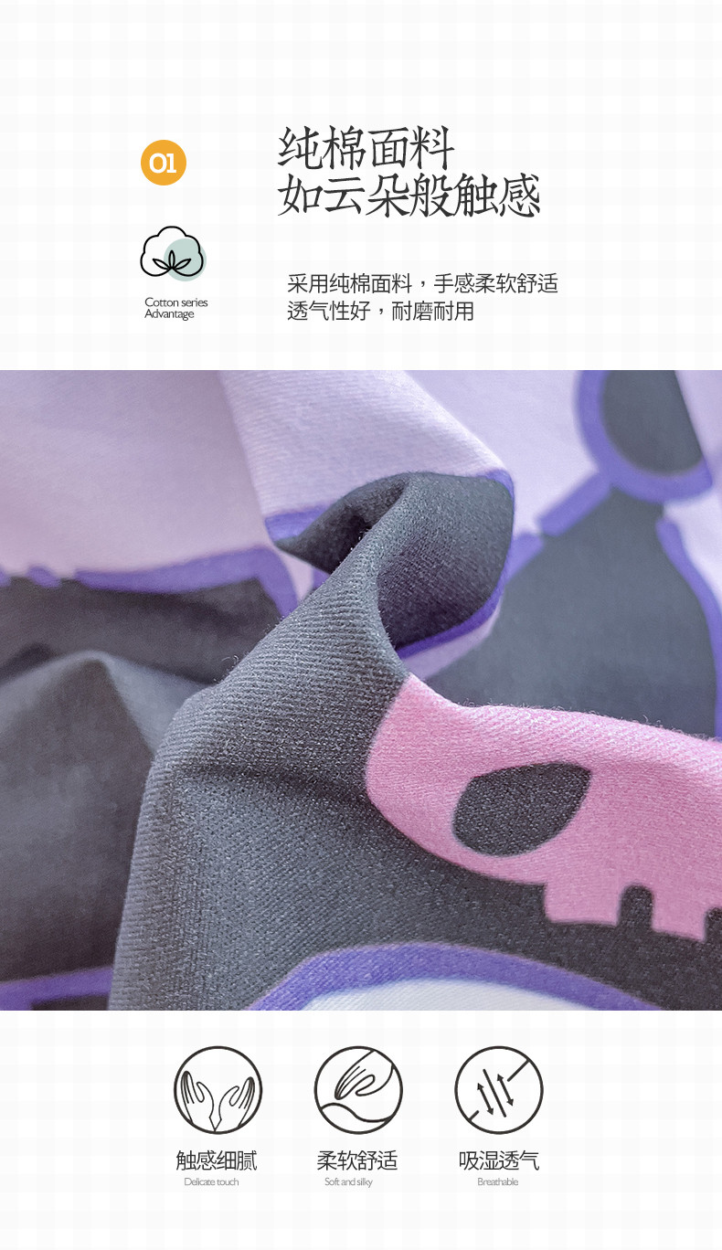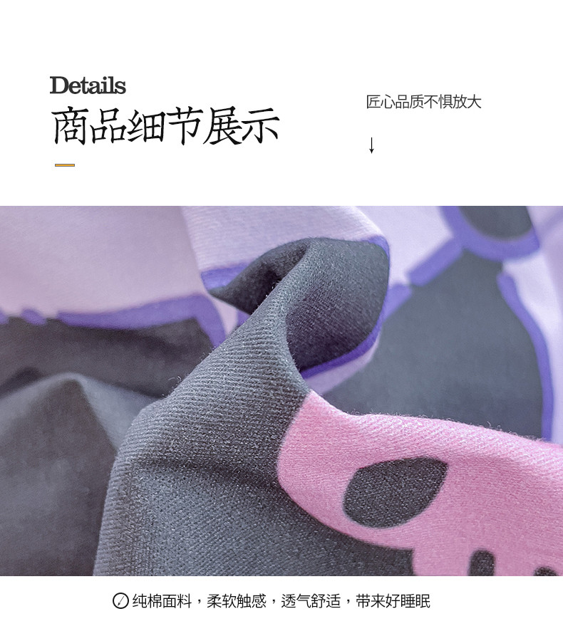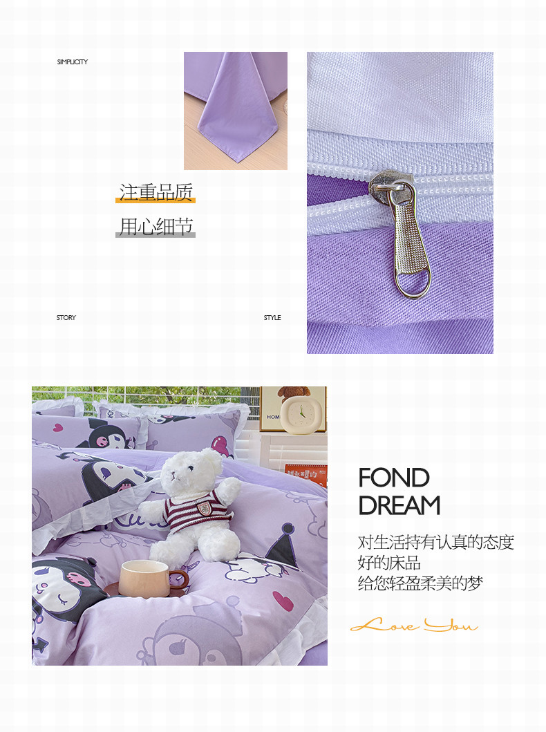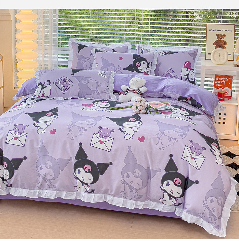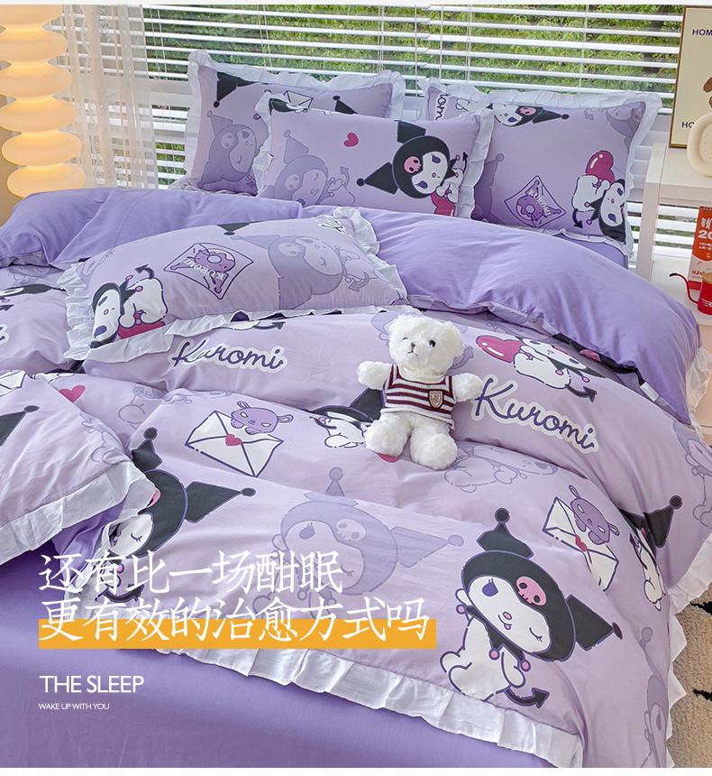 商品名称:桃子 2023新款三丽鸥正版授权韩版花边少女纯棉系列四件套 棉花边-紫紫库洛米