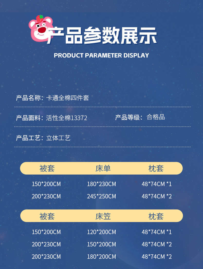 商品名称:孩子王家纺 2023新款全棉卡通学生活性印花大版工艺款四件套 可爱熊