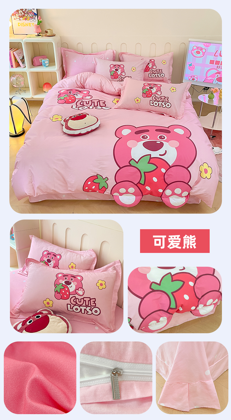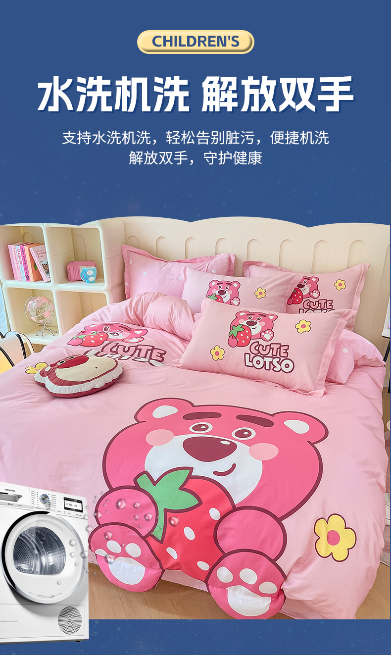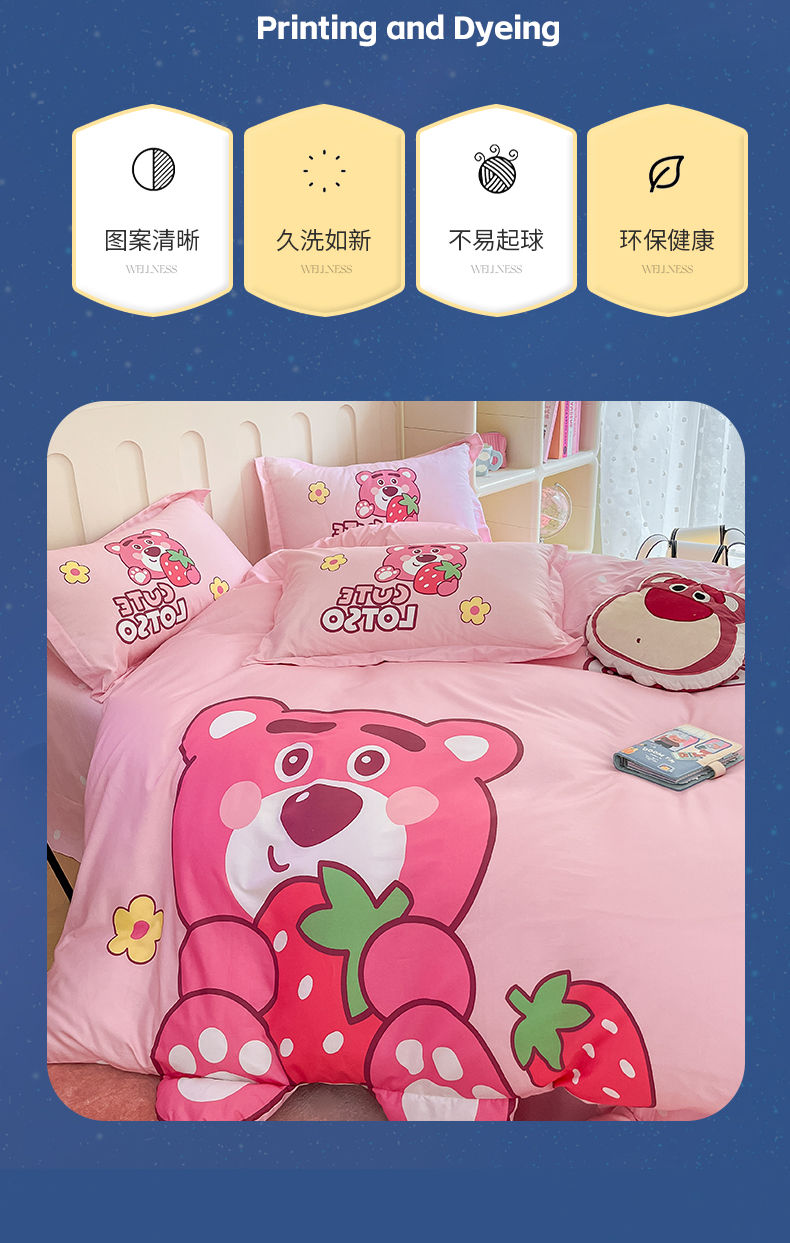孩子王家纺 2023新款全棉卡通学生活性印花大版工艺款四件套 可爱熊