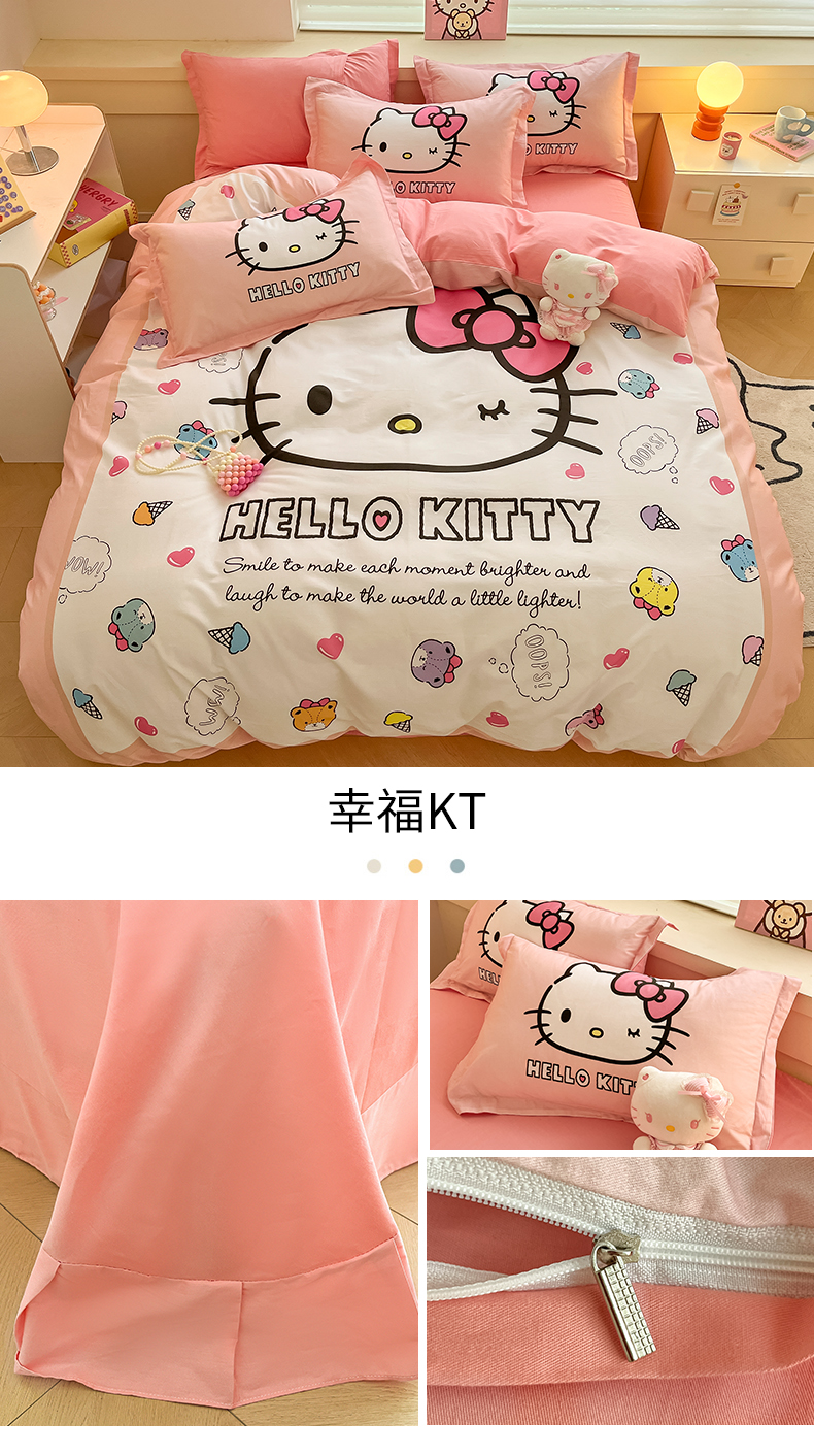 当前位置: 91家纺网 > 商品网购 > 床品套件 > 四件套 > 全棉普通四件套 > 孩子王家纺 2023新款三丽鸥系列全棉活性大版印花卡通学生四件套 幸福KT