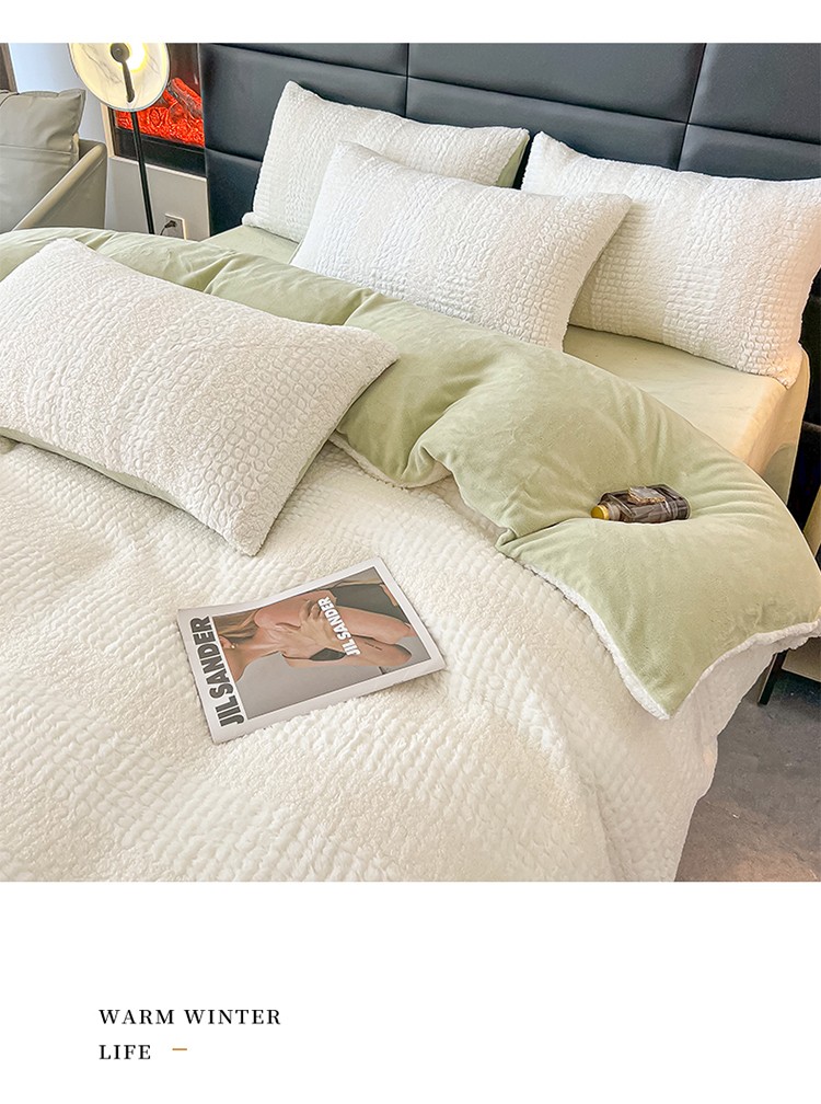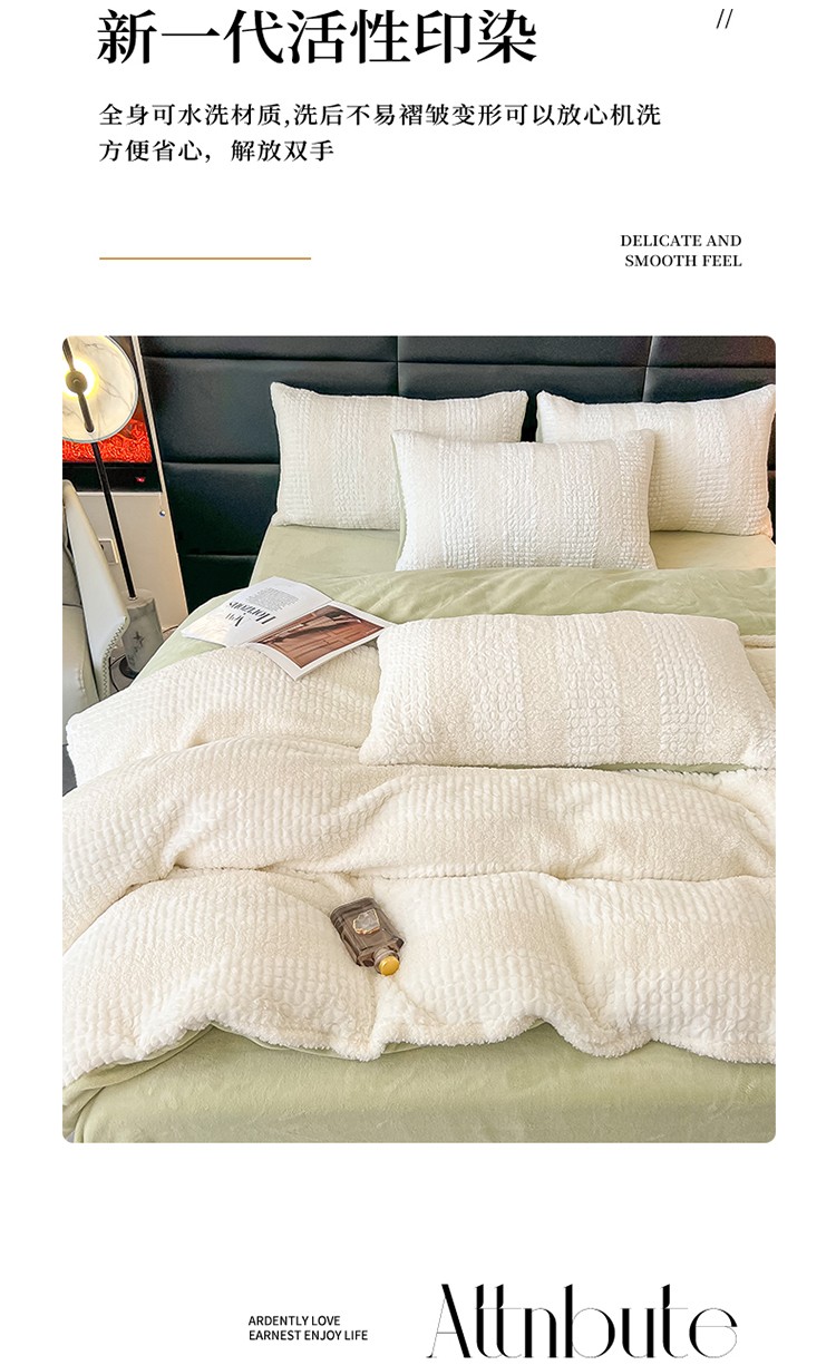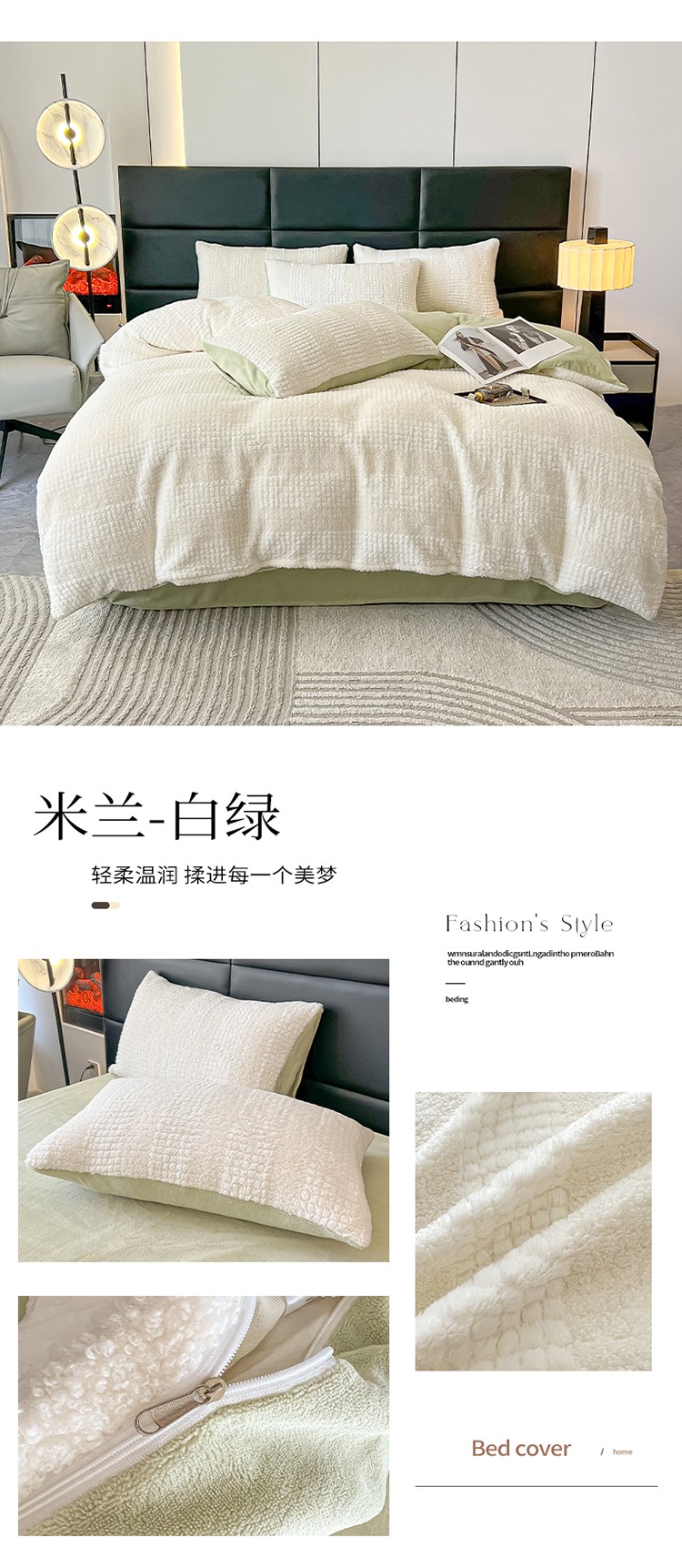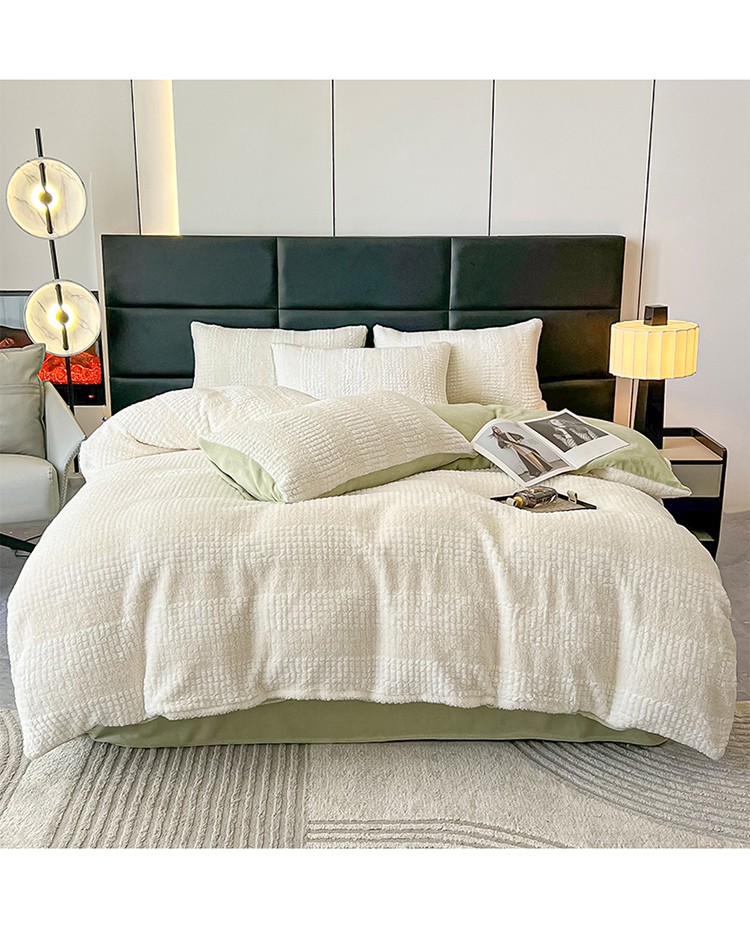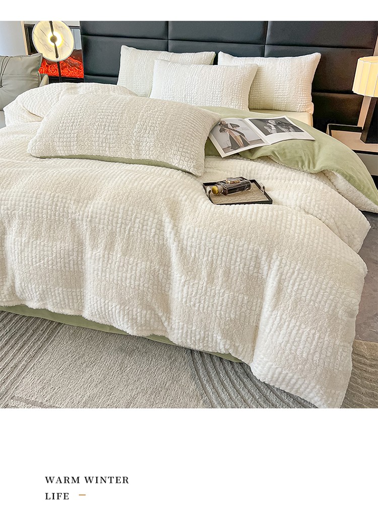 当前位置: 91家纺网 > 商品网购 > 床品套件 > 四件套 > 牛奶绒四件套 > 总)韩都家居2023直播爆款320克A类泰迪兔毛绒剪花纯色牛奶绒四件套