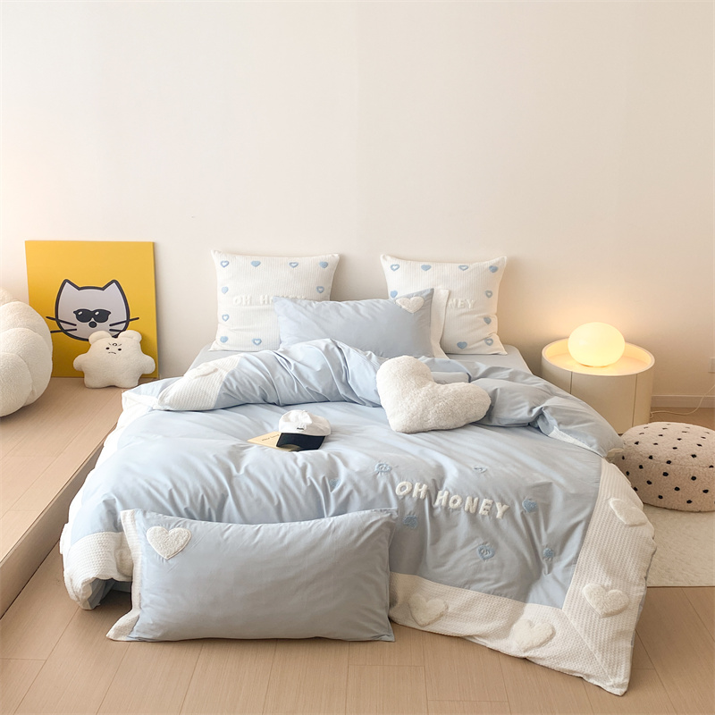 (总)星野 2023新款加厚40s水洗棉四件套-甜心,甜心清新粉,甜心仙蒂蓝