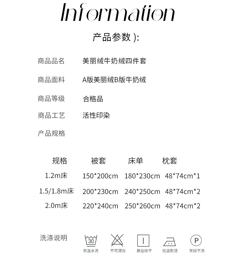 1.5m(5英尺)床笠款四件套 | ¥95.00 |