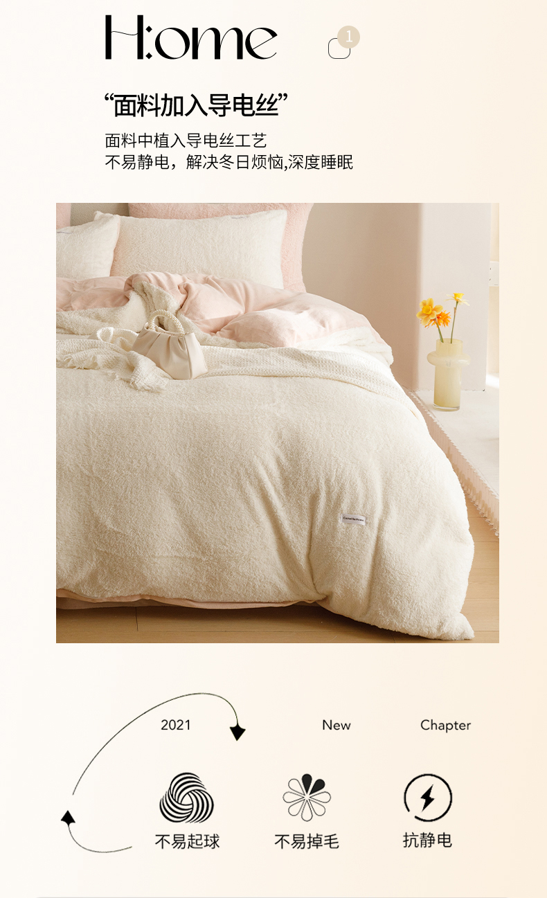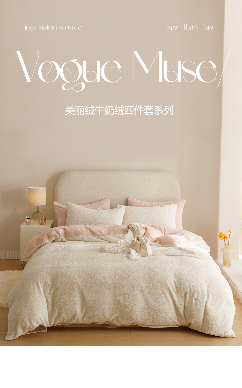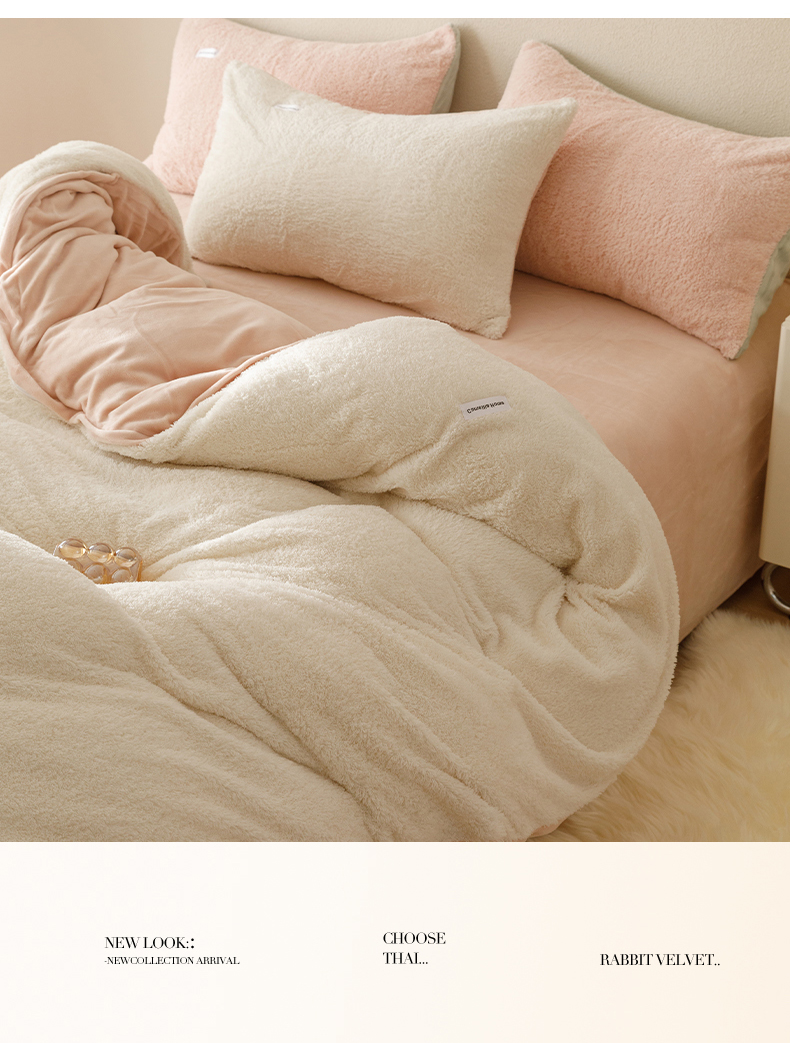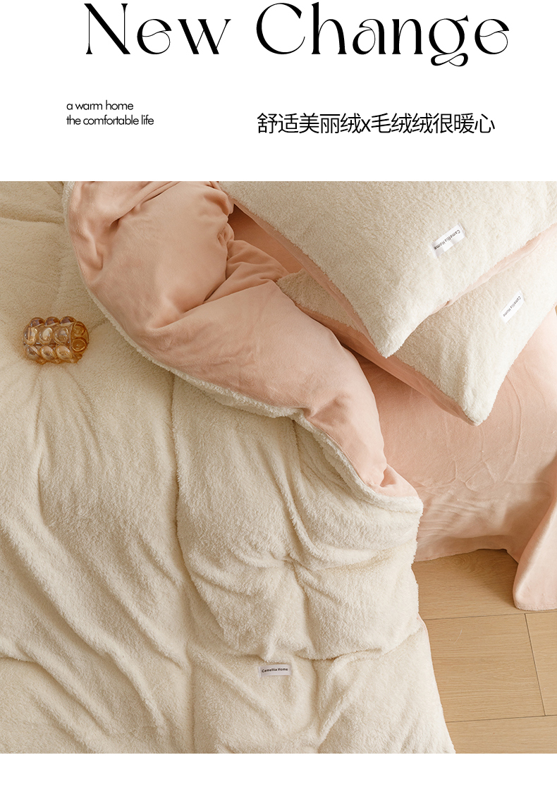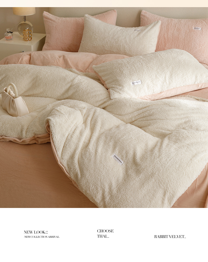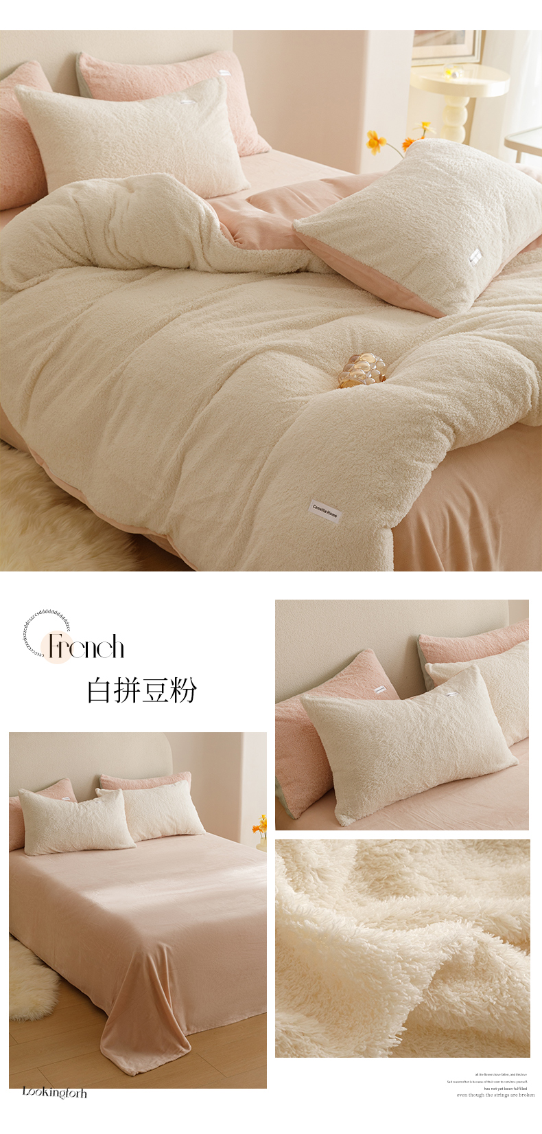 当前位置: 91家纺网 > 商品网购 > 床品套件 > 四件套 > 牛奶绒四件套 > 2023新款小清新纯色双拼美丽绒牛奶绒四件套 白拼豆粉